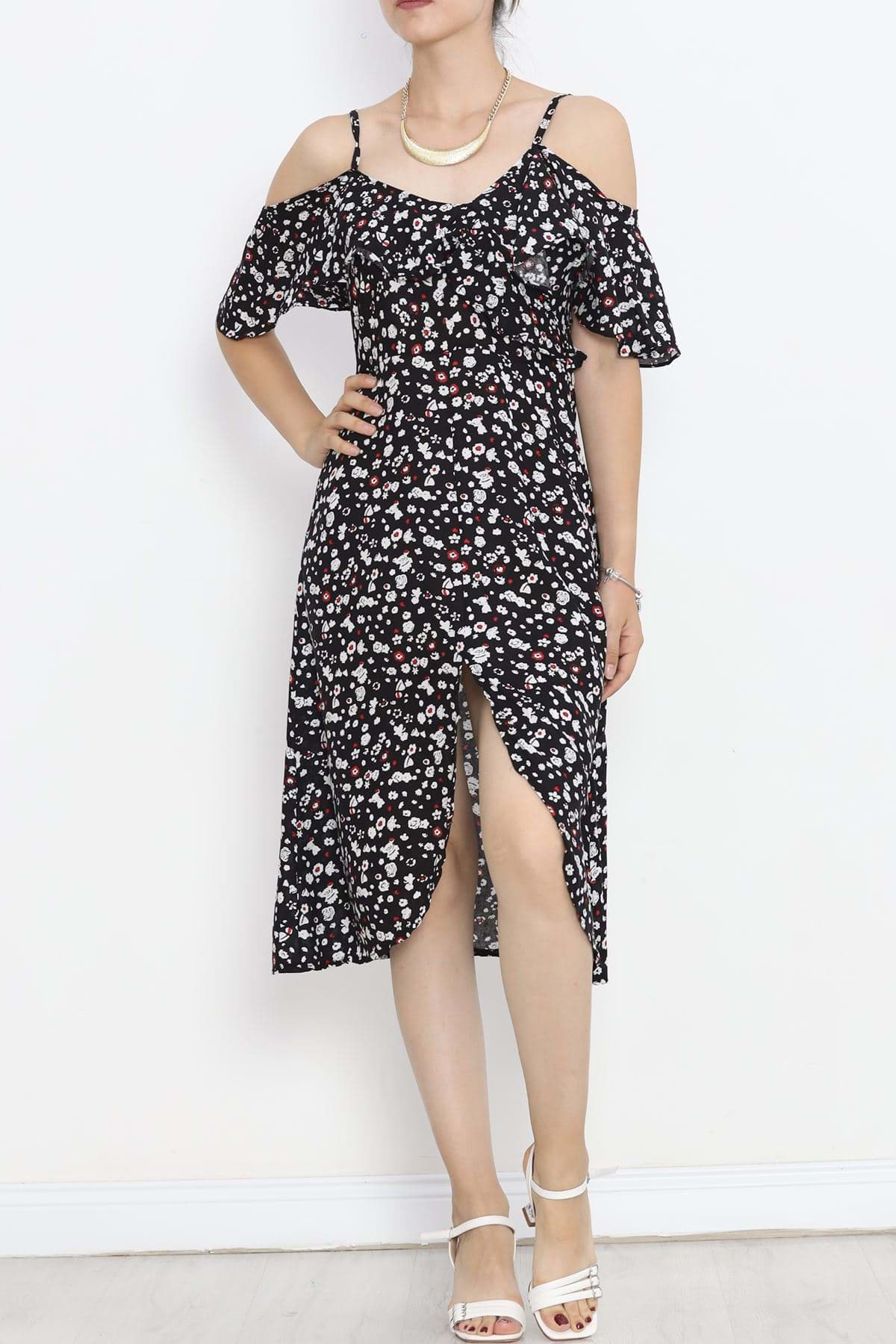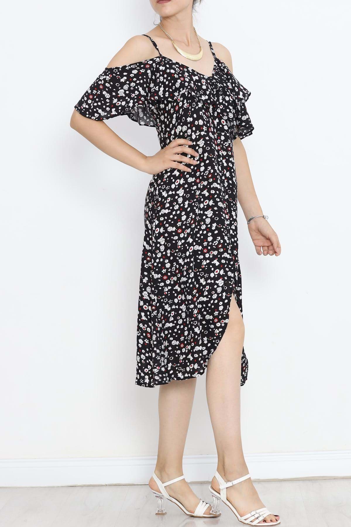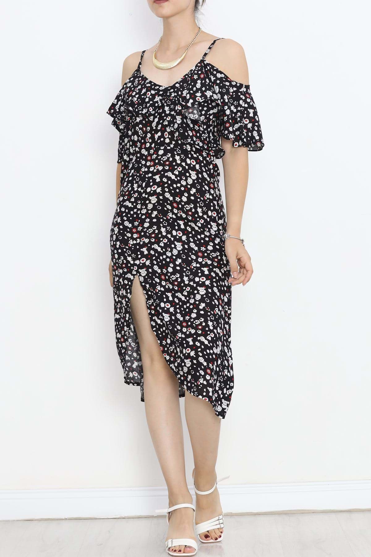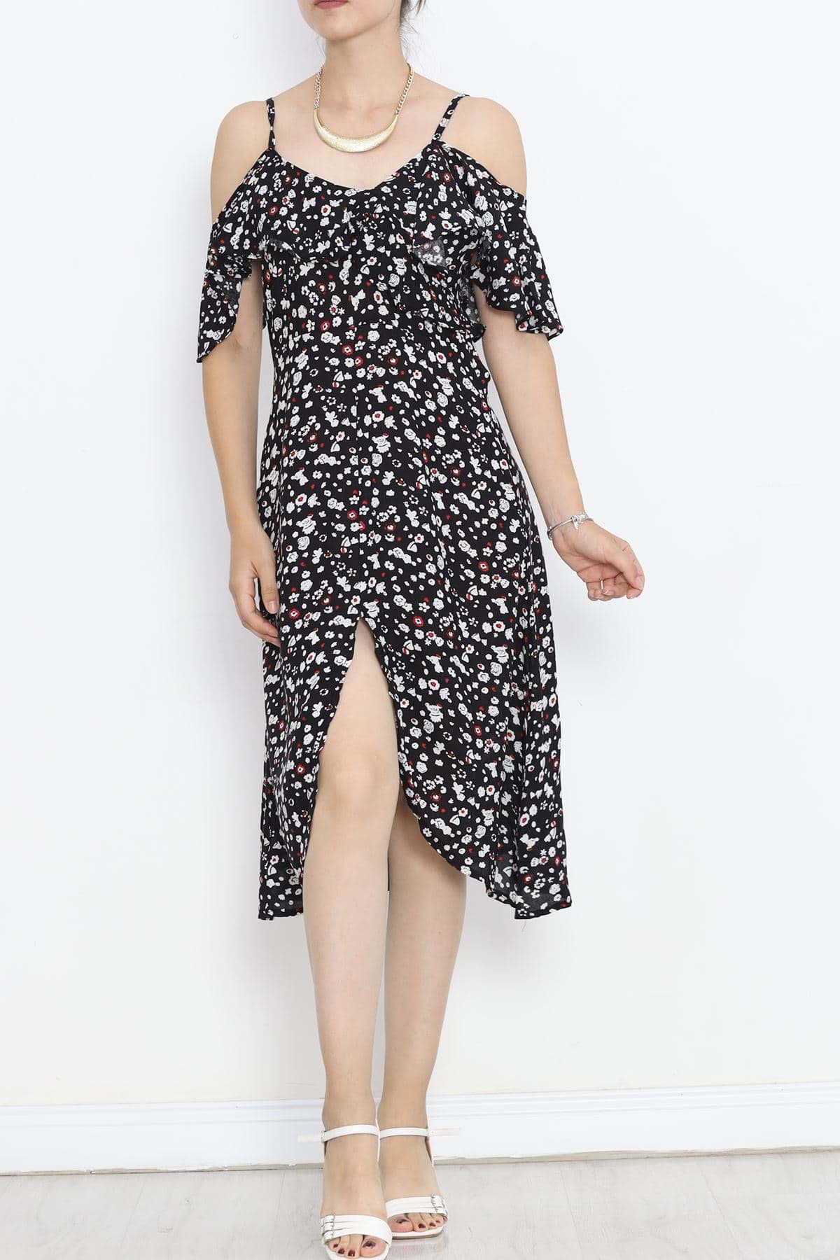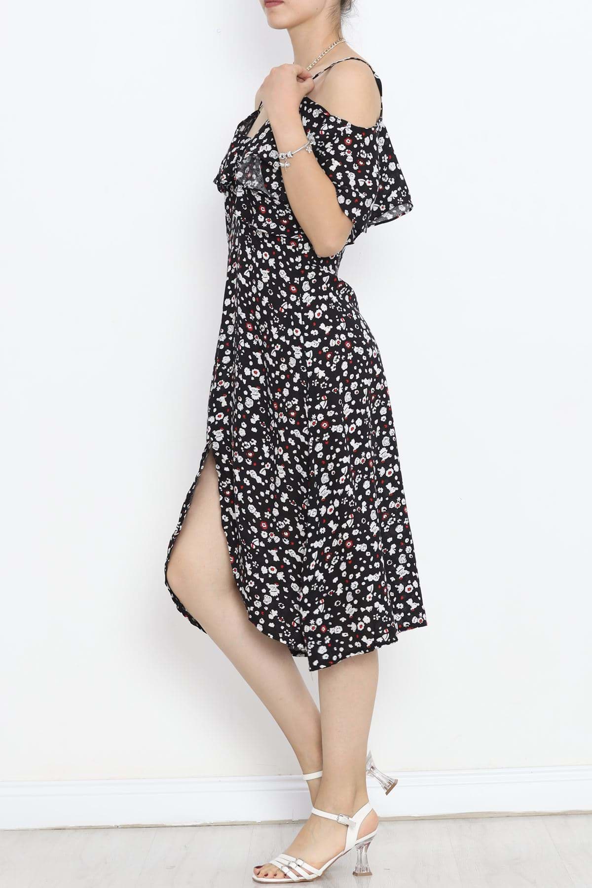 Askılı Fırfırlı Elbise Siyahdesenli - 152397.701.