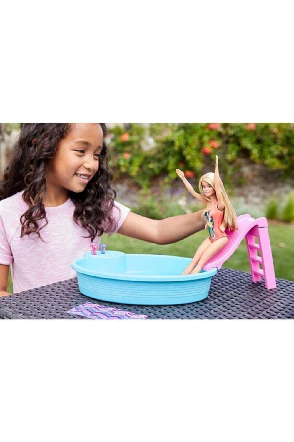 Barbie Bebek Havuzu İçine Kaydıraktan Kayarak Girebilir Atlayabilir veya Yerleşik Oturma Alanında Keyif Yapabilir.