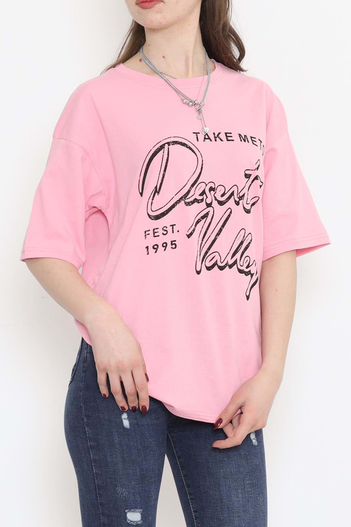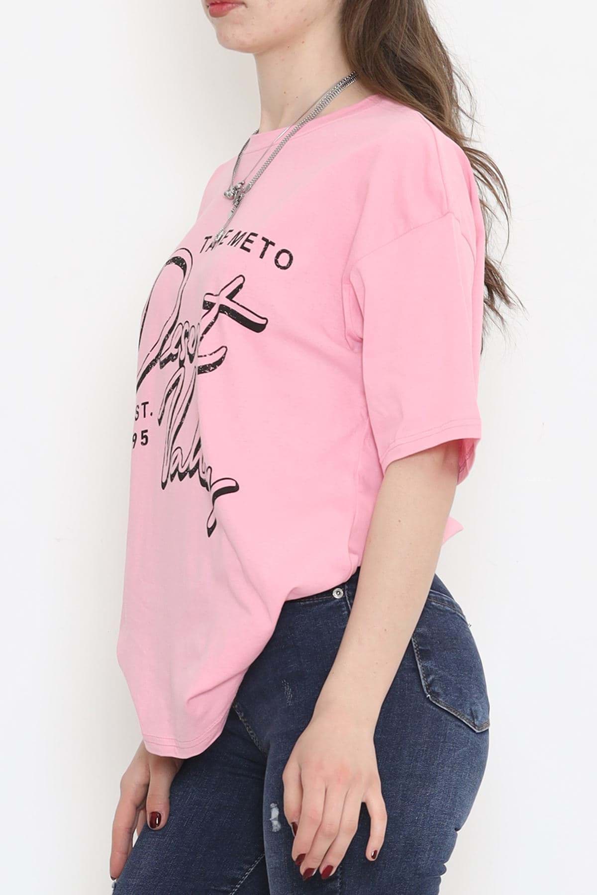 Baskılı Bisiklet Yaka Tişört Pembe - 16516.1567.