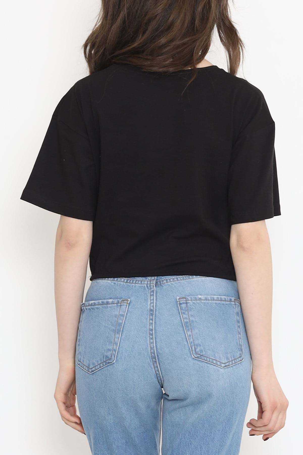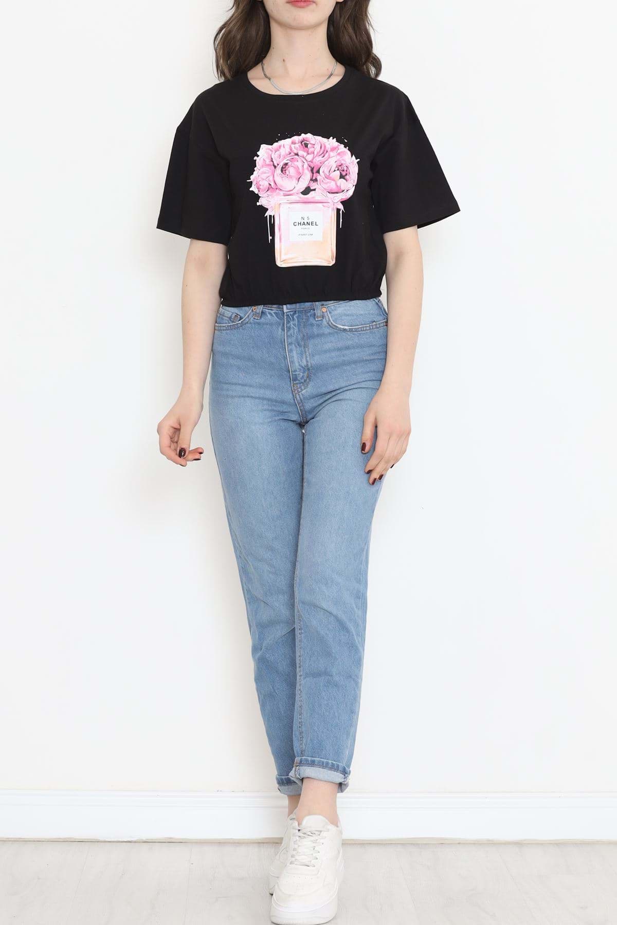 Baskılı Crop Tişört Siyah - 16544.1567.