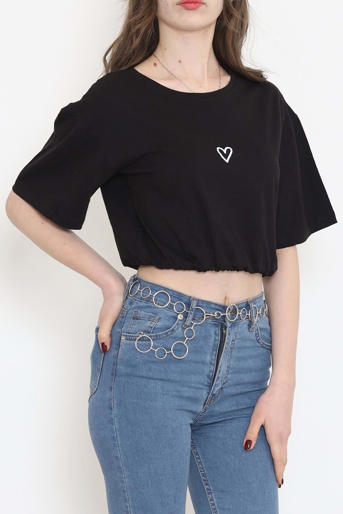 Baskılı Crop Tişört Siyah - 16548.1567.