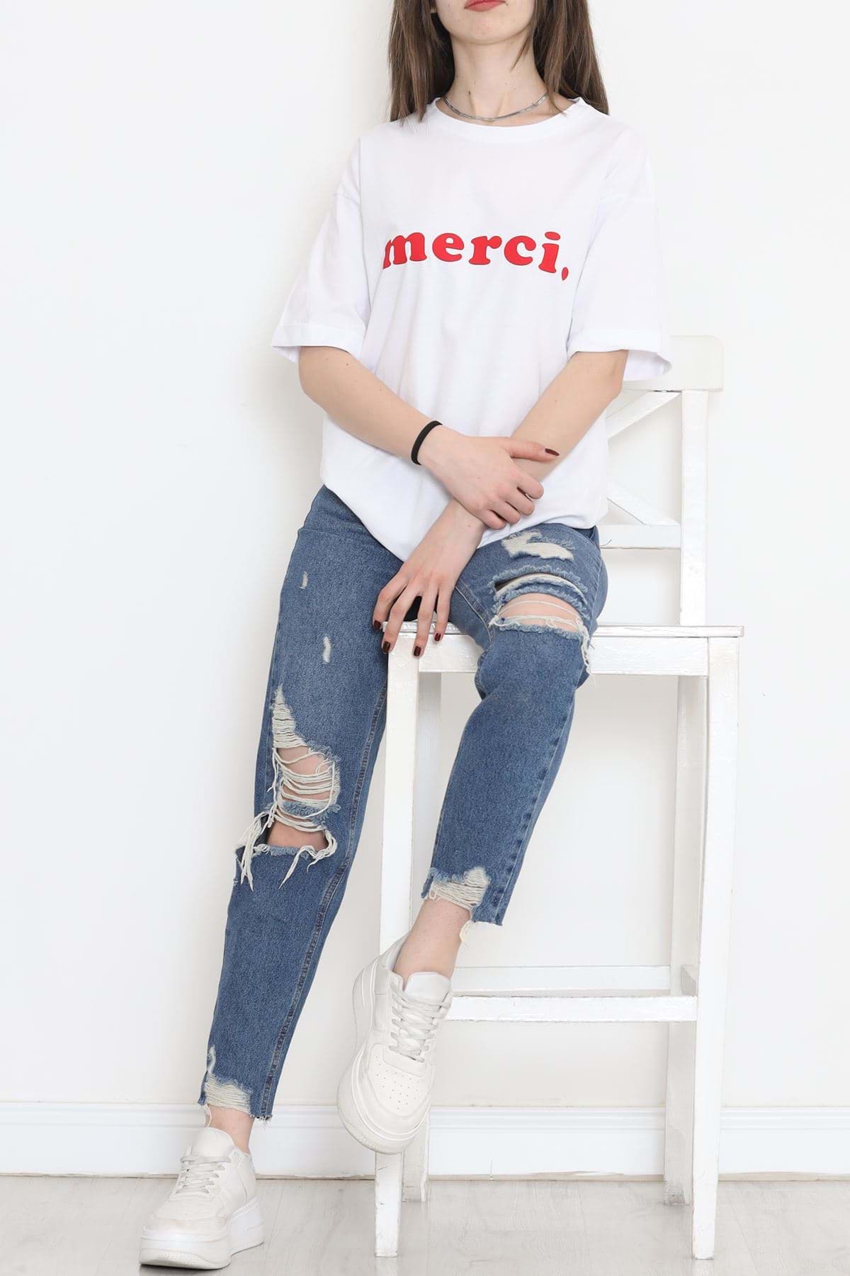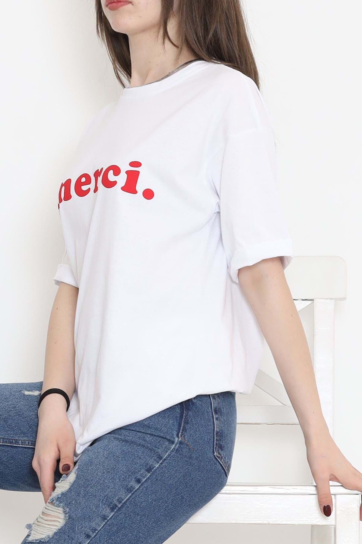 Baskılı Duble Kol Tişört Beyaz - 16536.1567.