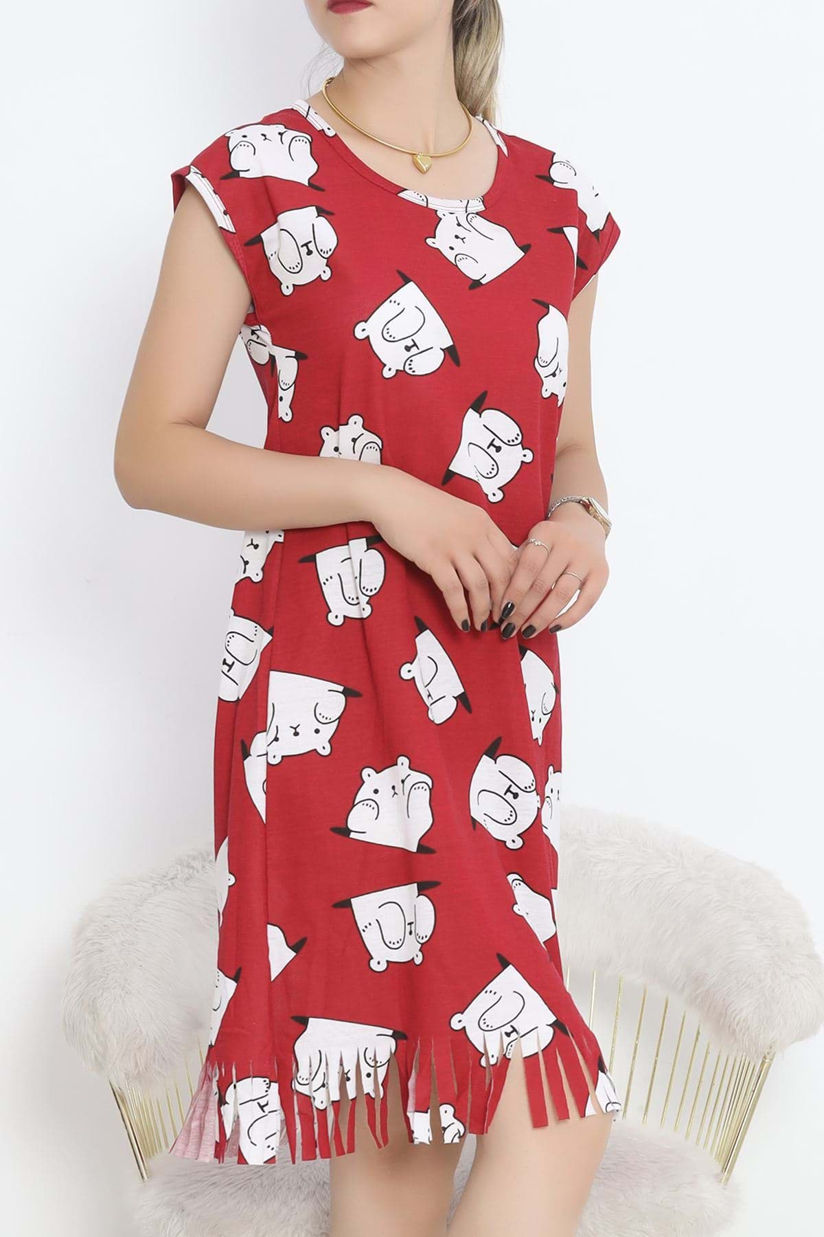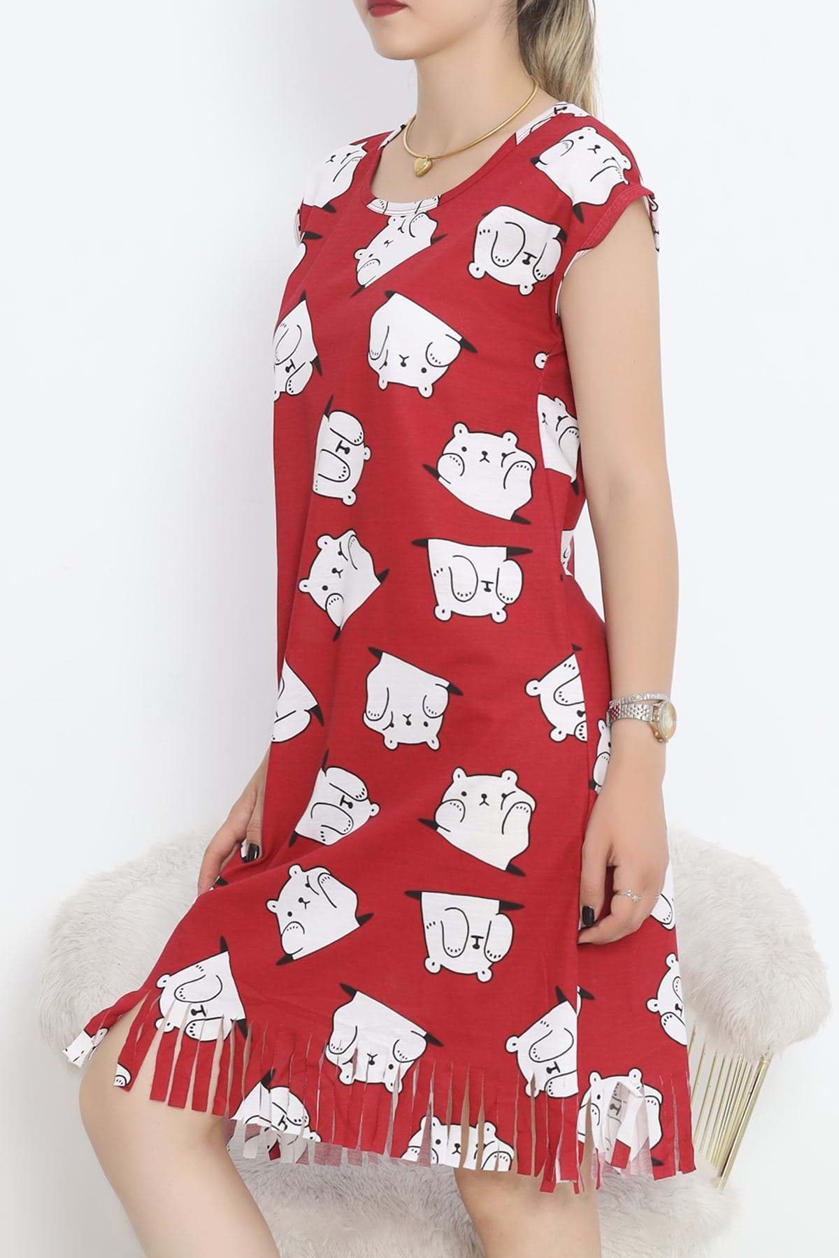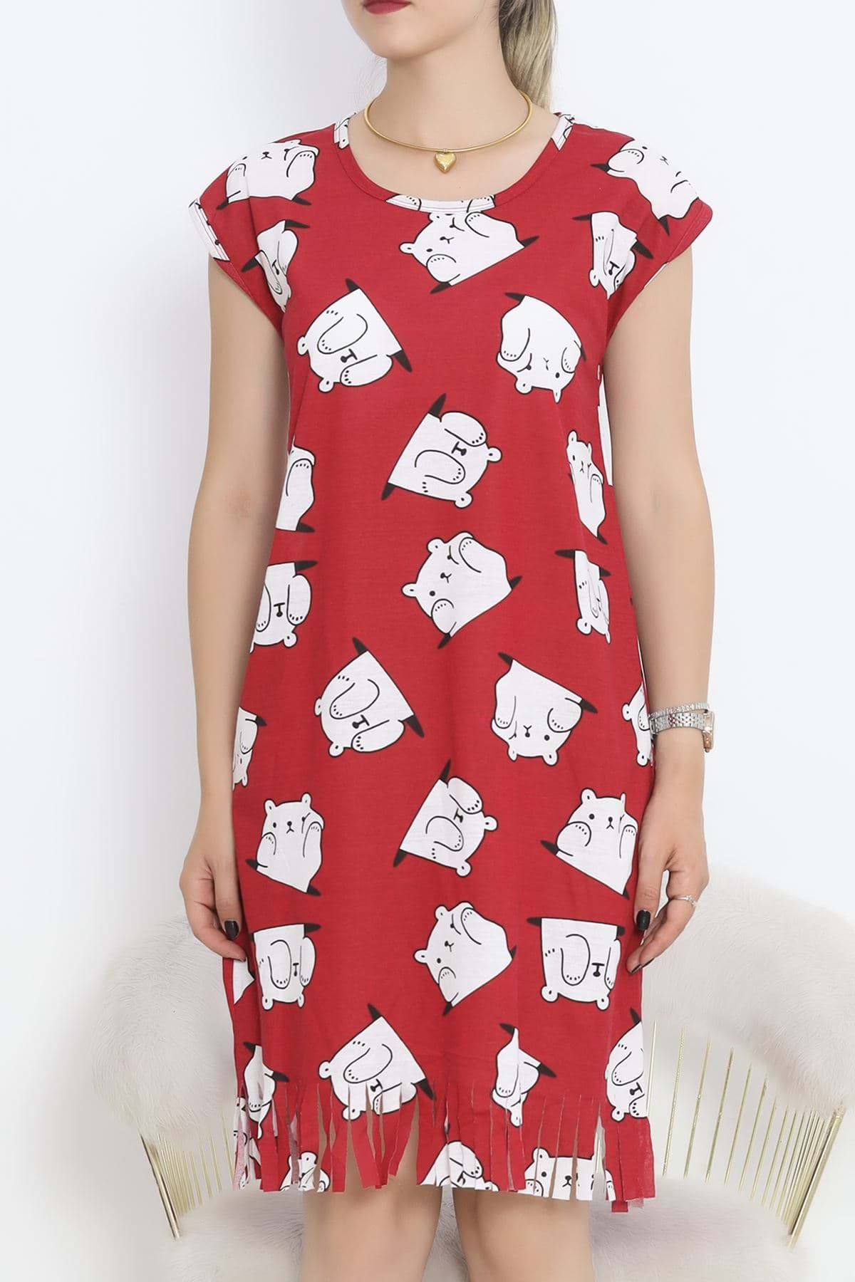 • Baskılı Rotasyon Püsküllü Elbise Kırmızıbeyaz - 263.1287. resmi