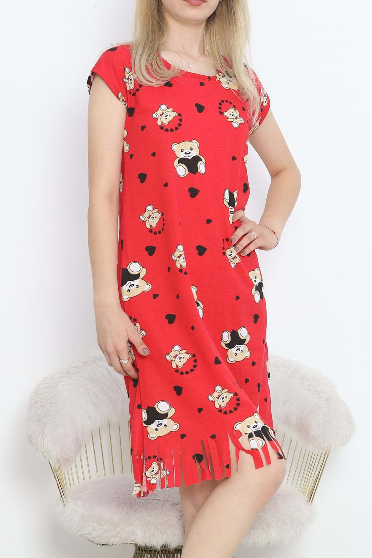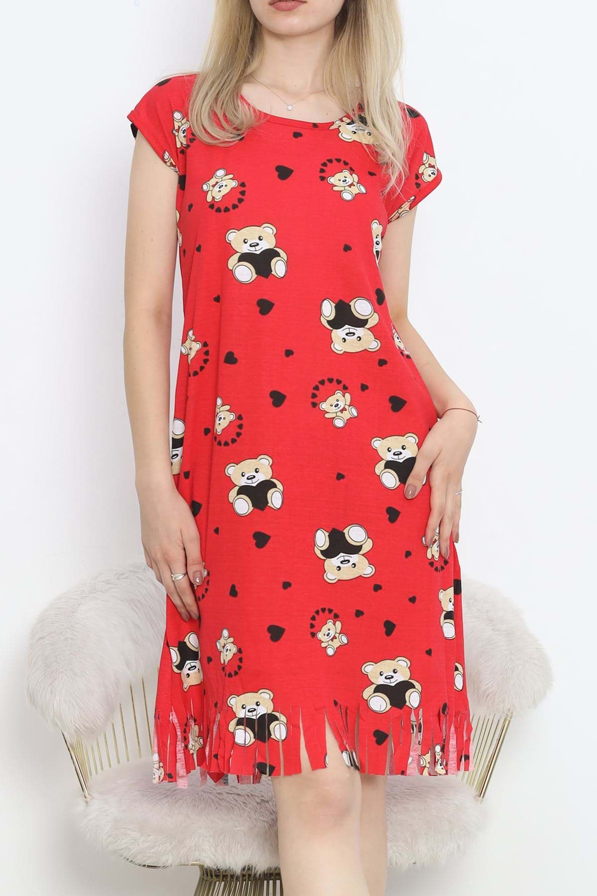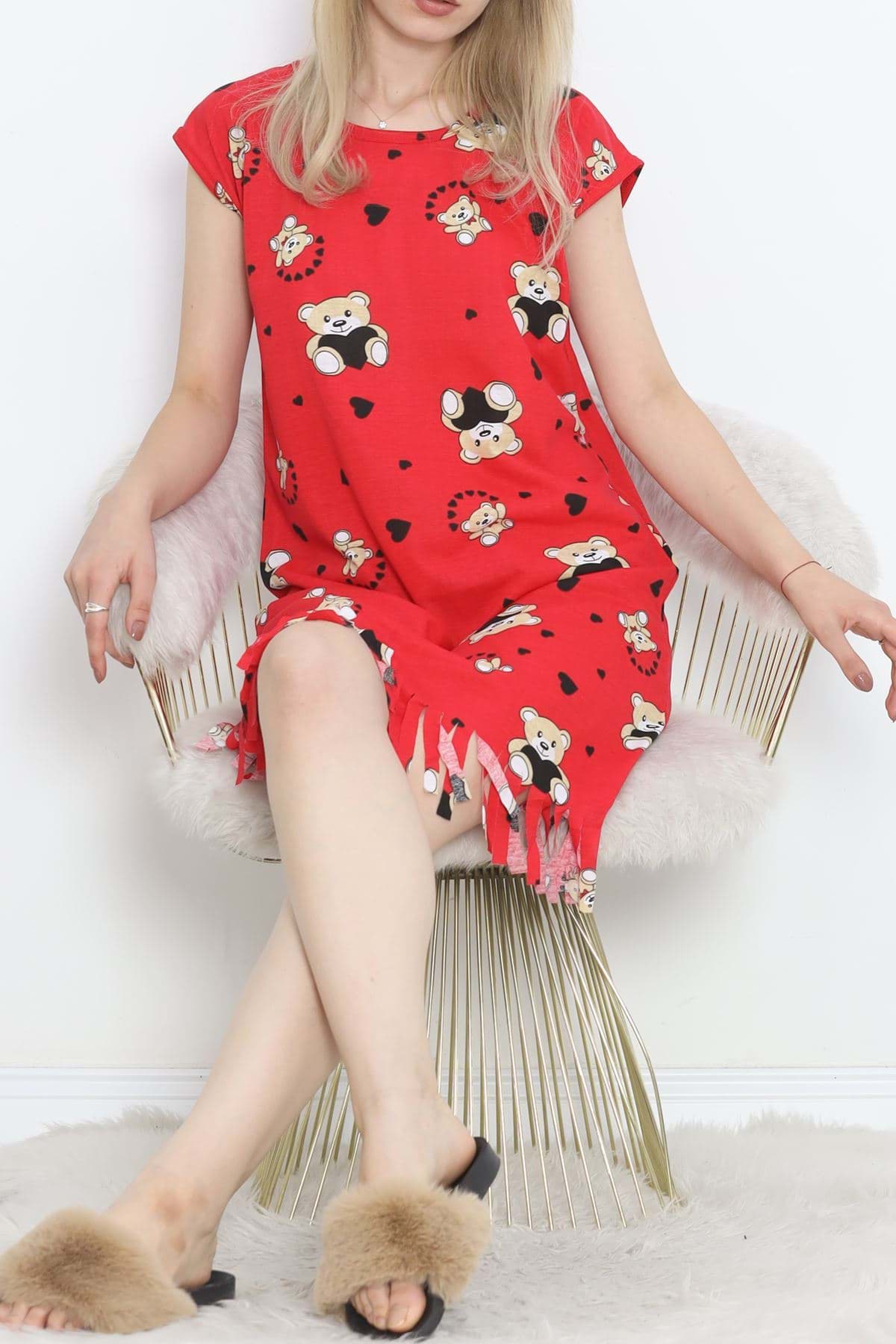 Baskılı Rotasyon Püsküllü Elbise Kırmızısiyah - 263.1287. resmi