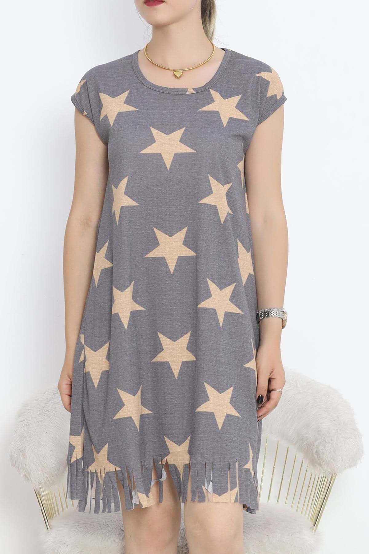 Baskılı Rotasyon Püsküllü Elbise Koyugri - 263.1287.