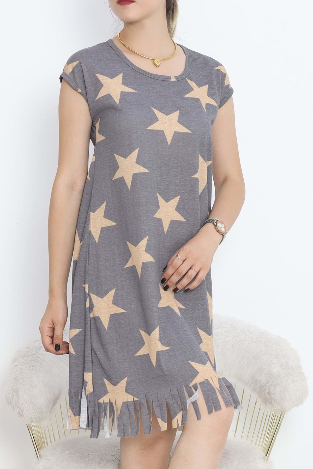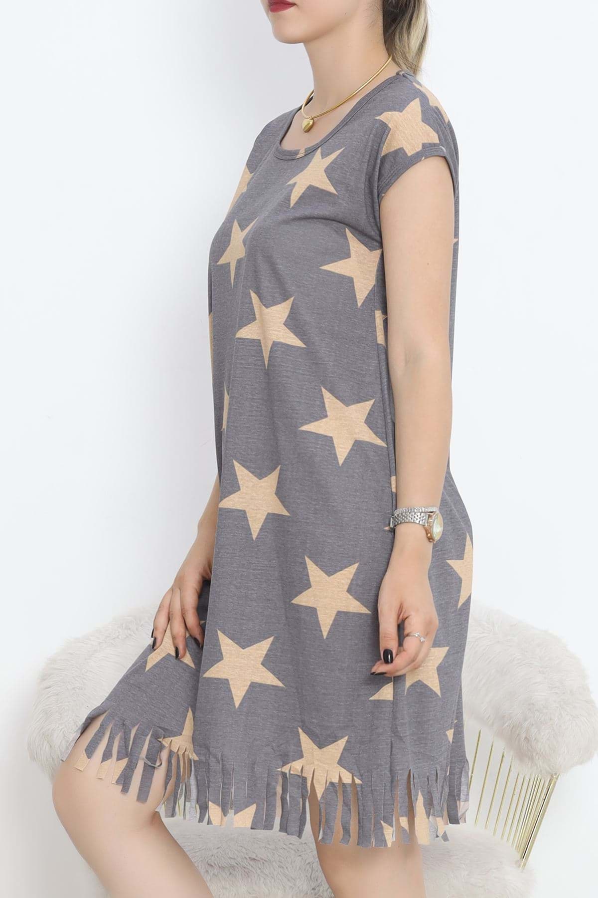 • Baskılı Rotasyon Püsküllü Elbise Koyugri - 263.1287. resmi