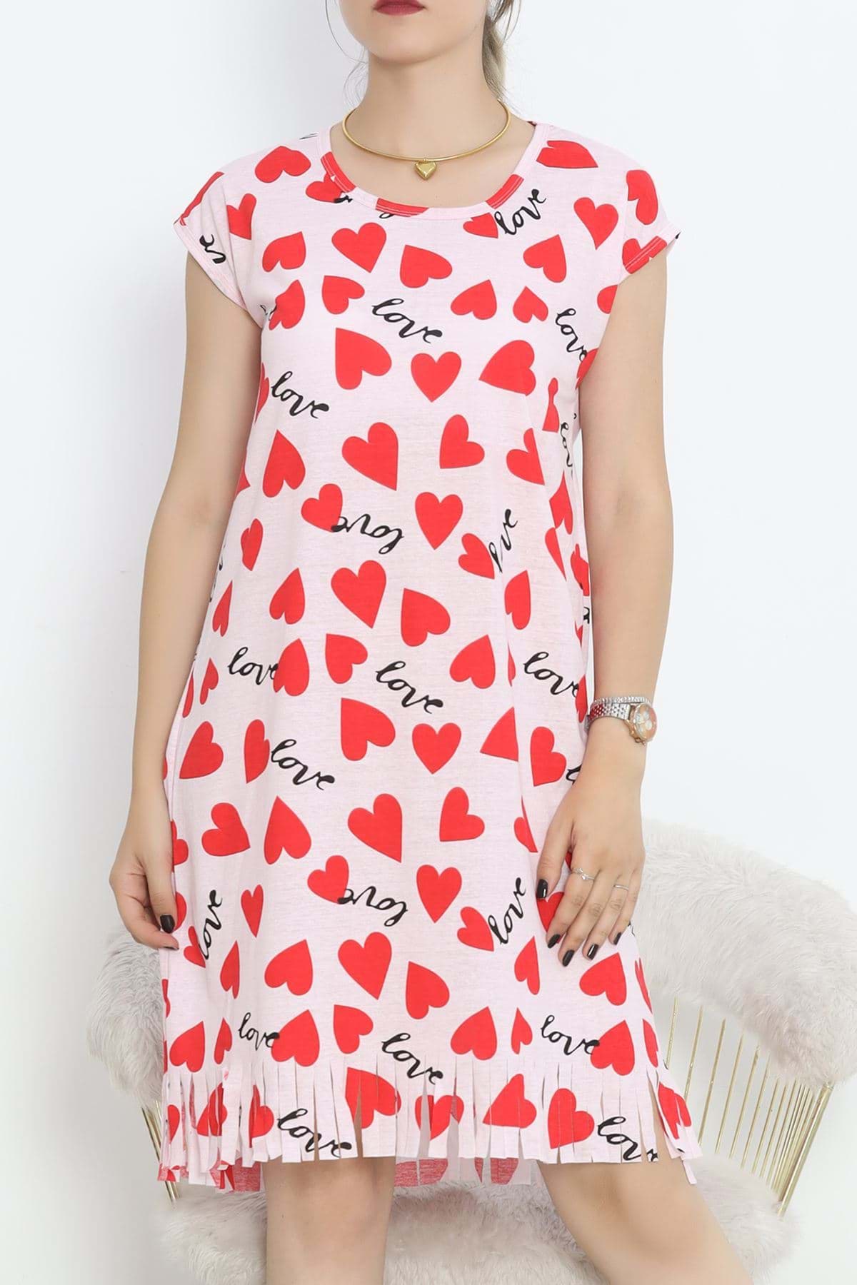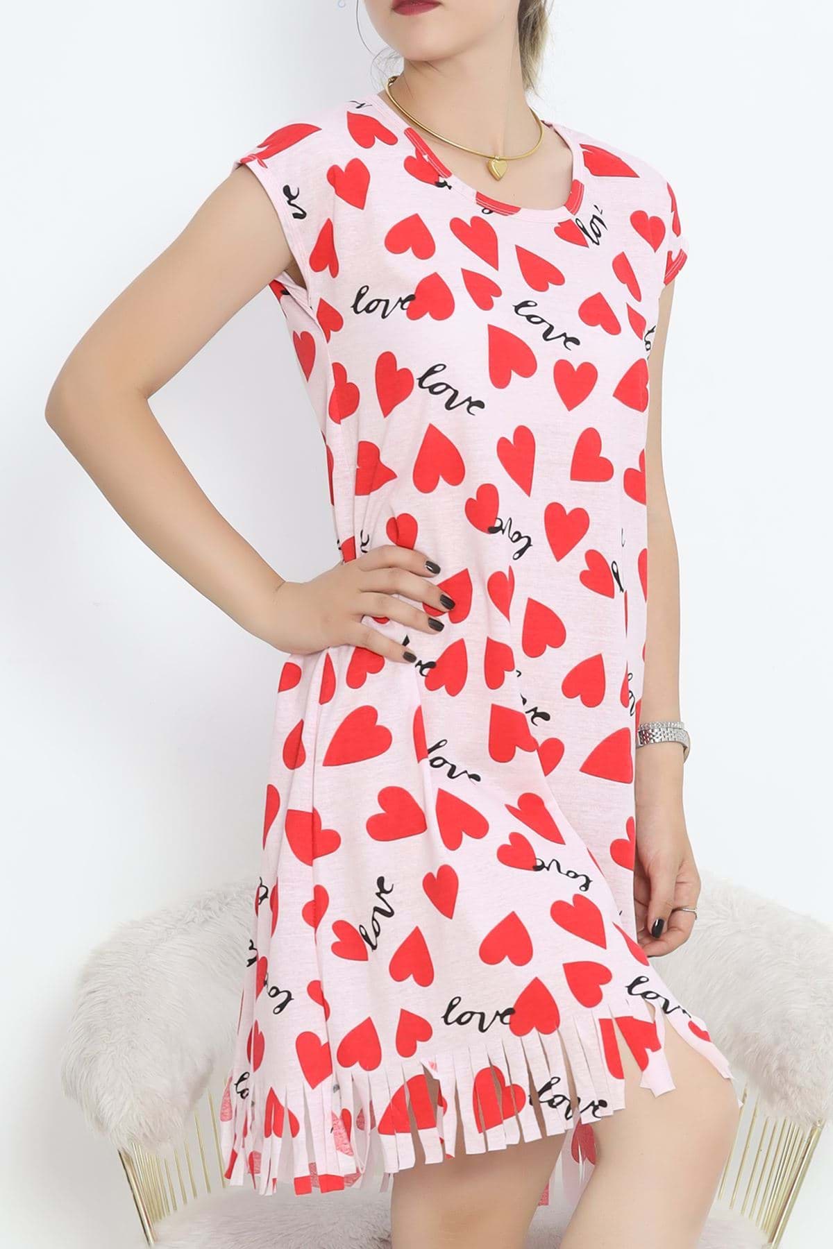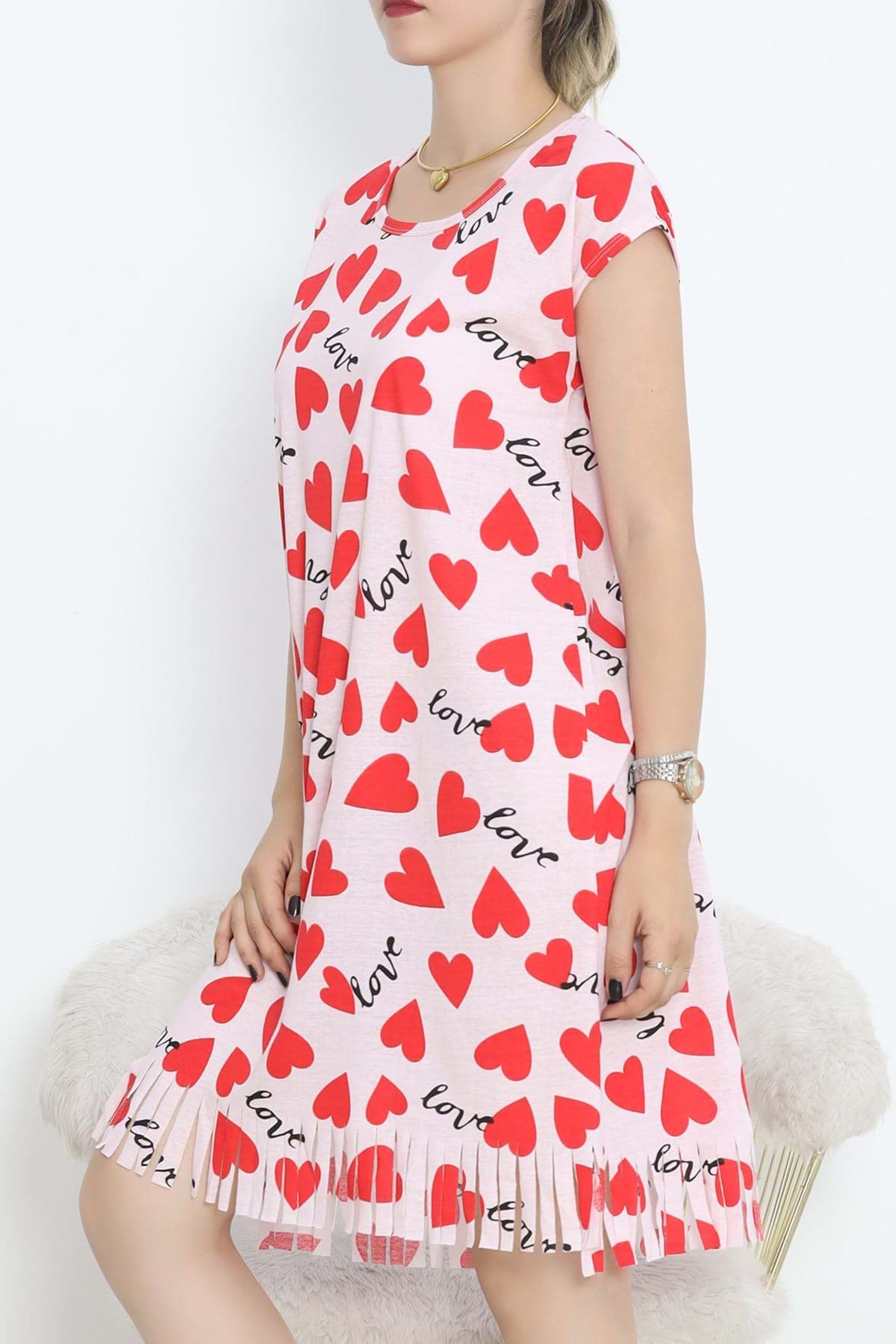 Baskılı Rotasyon Püsküllü Elbise Pembekırmızı - 263.1287. resmi