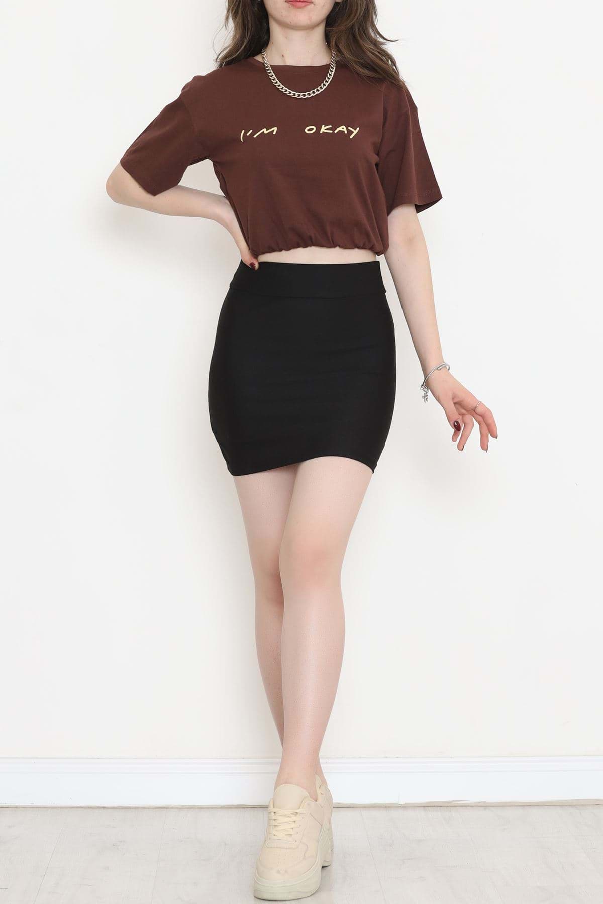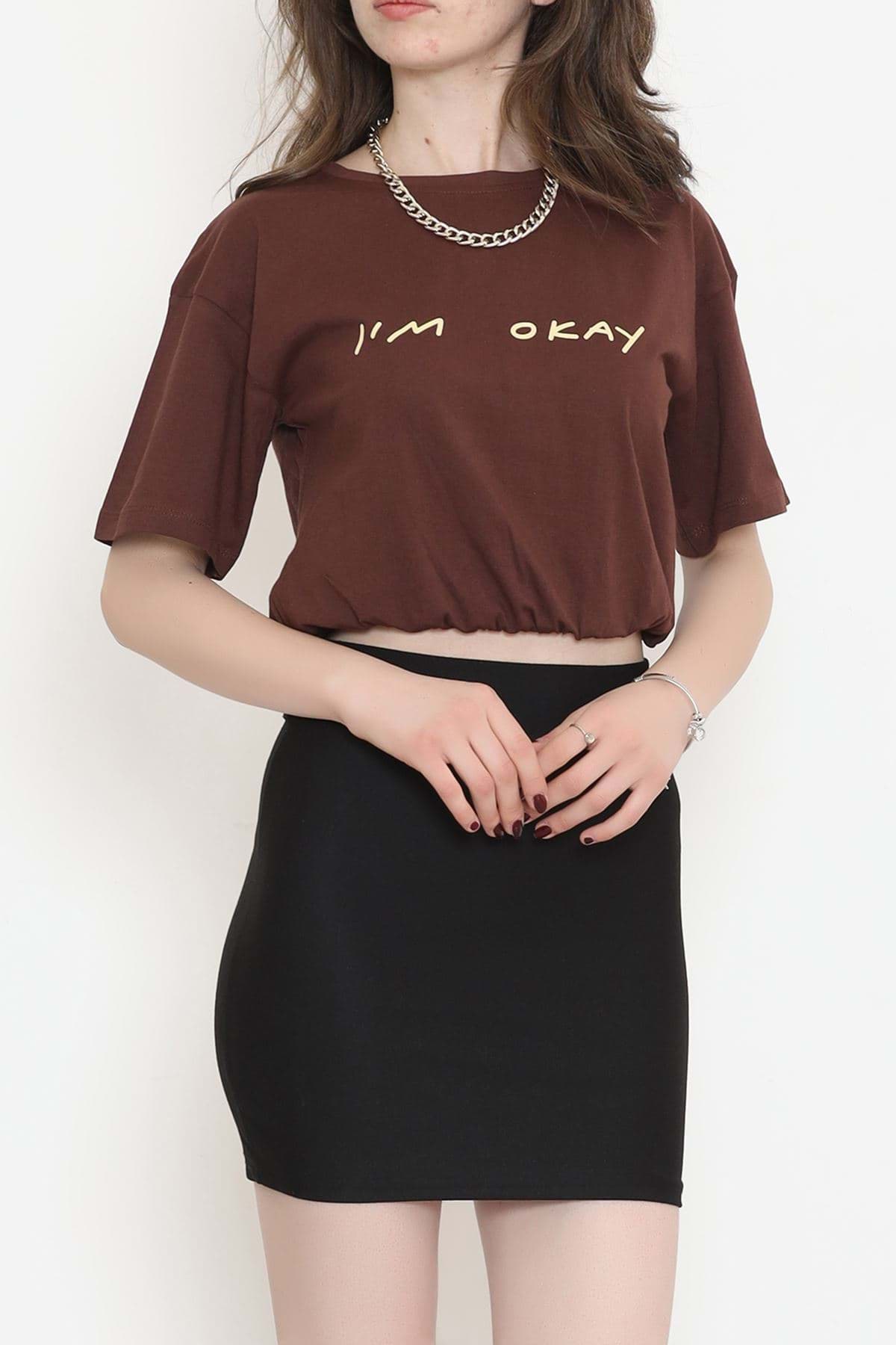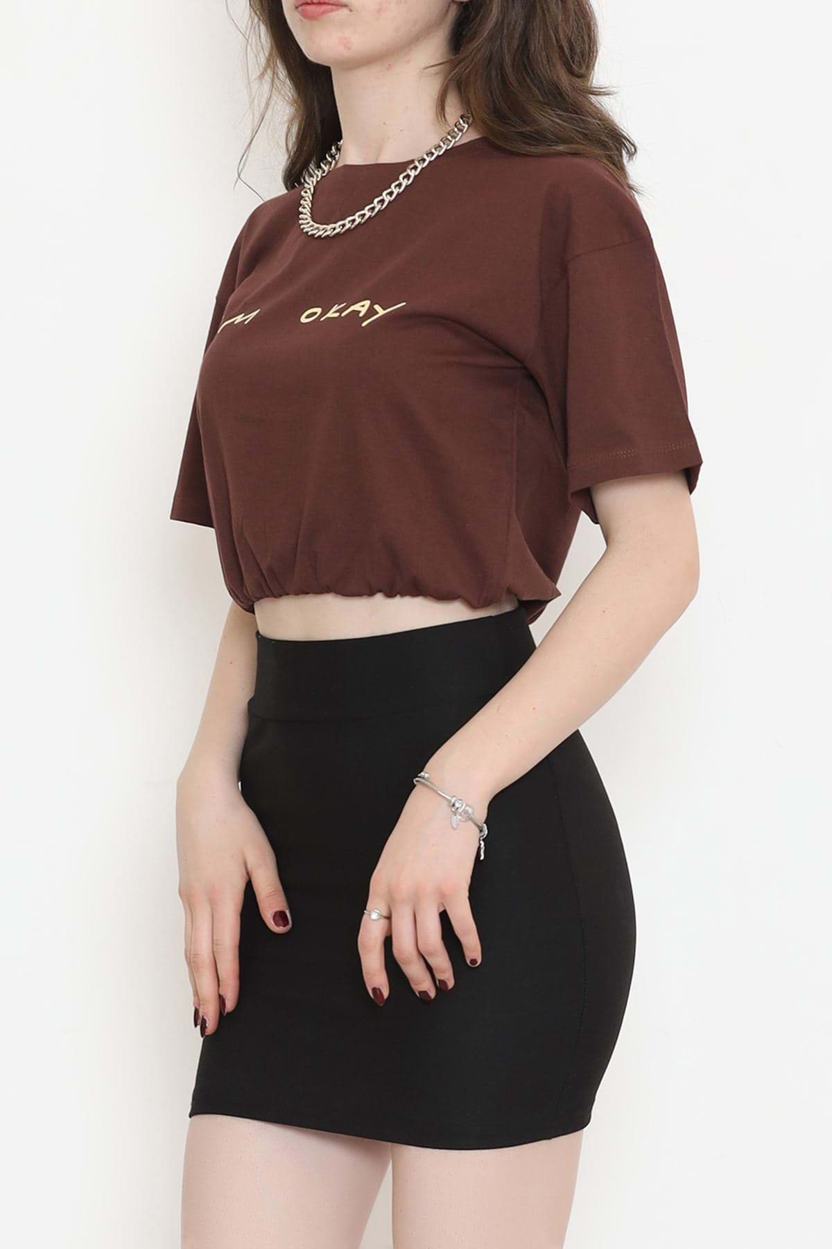 Beli Lastikli Crop Tişört Acıkahve - 16550.1567.
