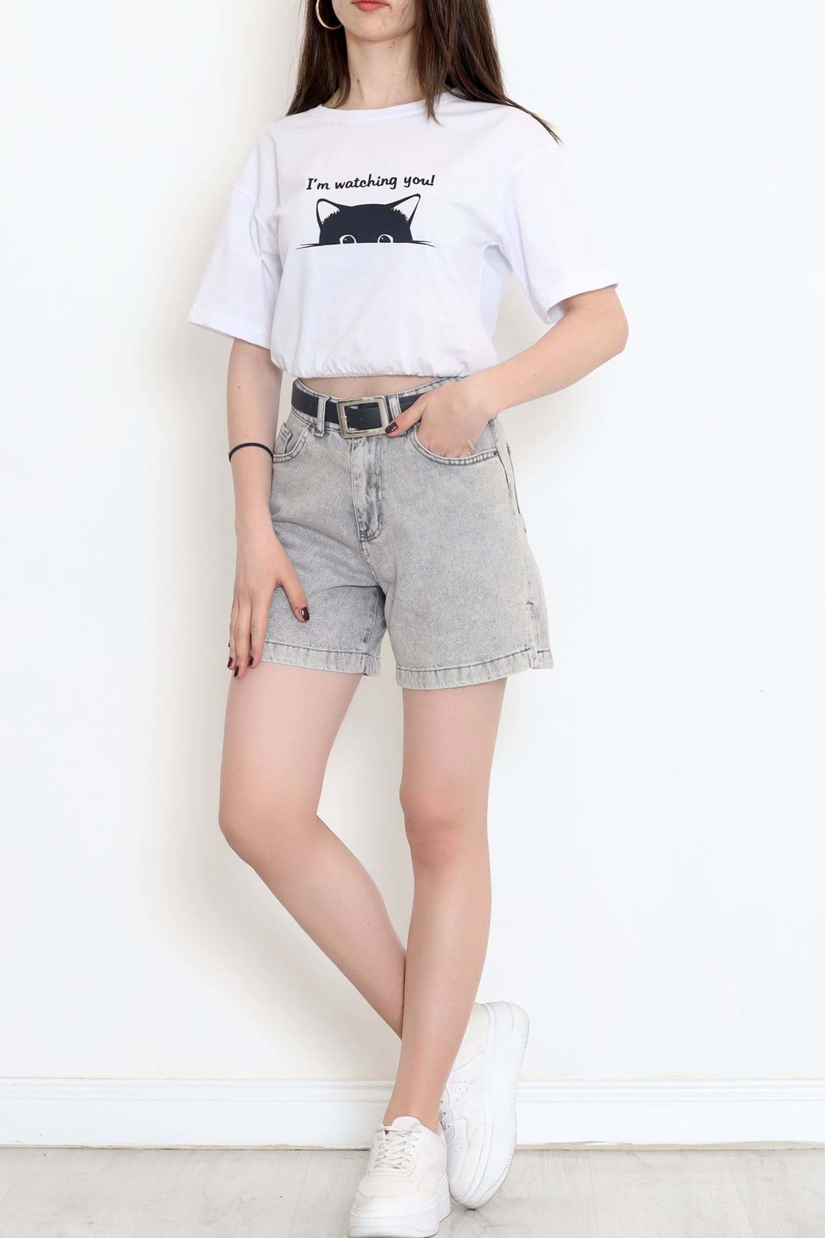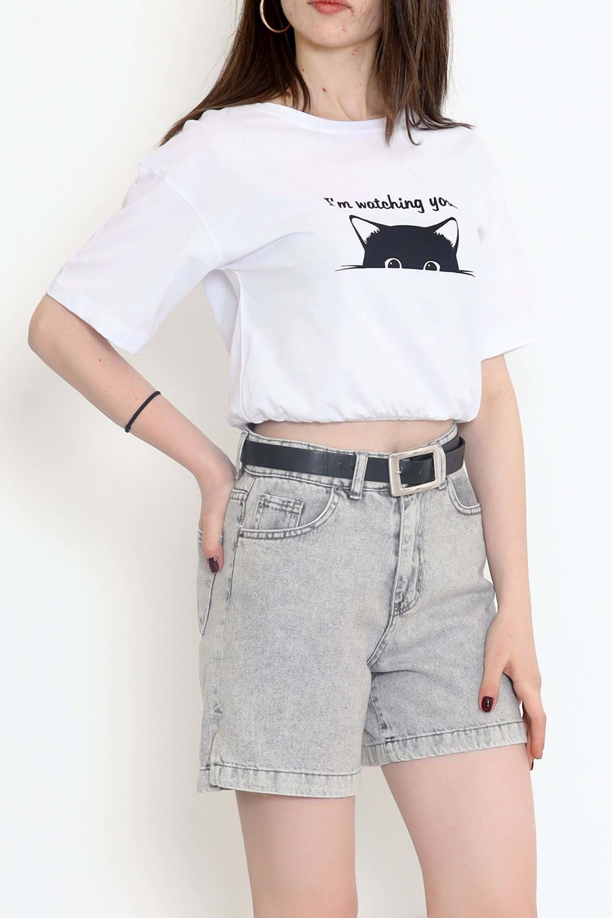 Beli Lastikli Tişört Beyaz - 16542.1567.