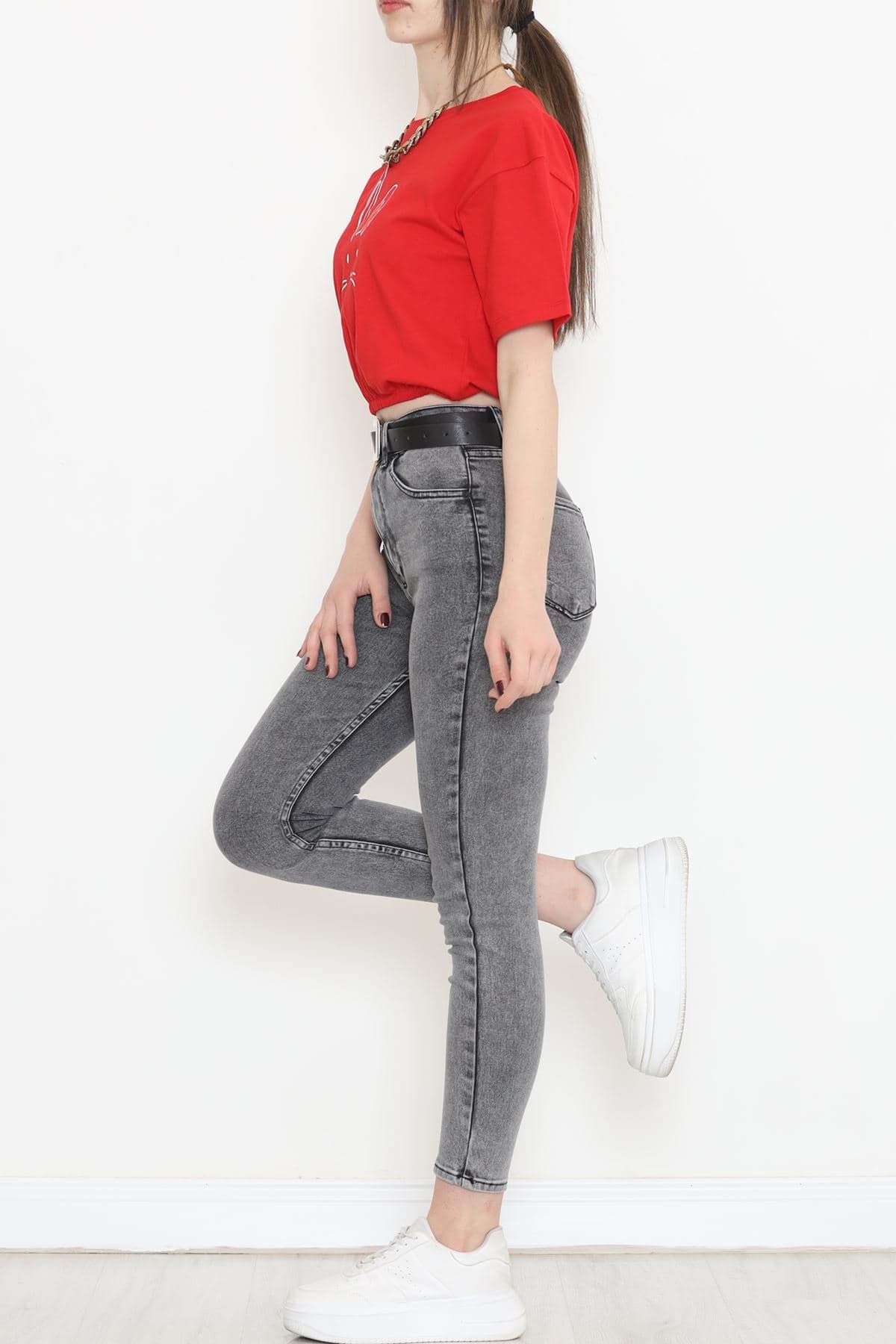 Beli Lastikli Tişört Kırmızı - 16546.1567. resmi