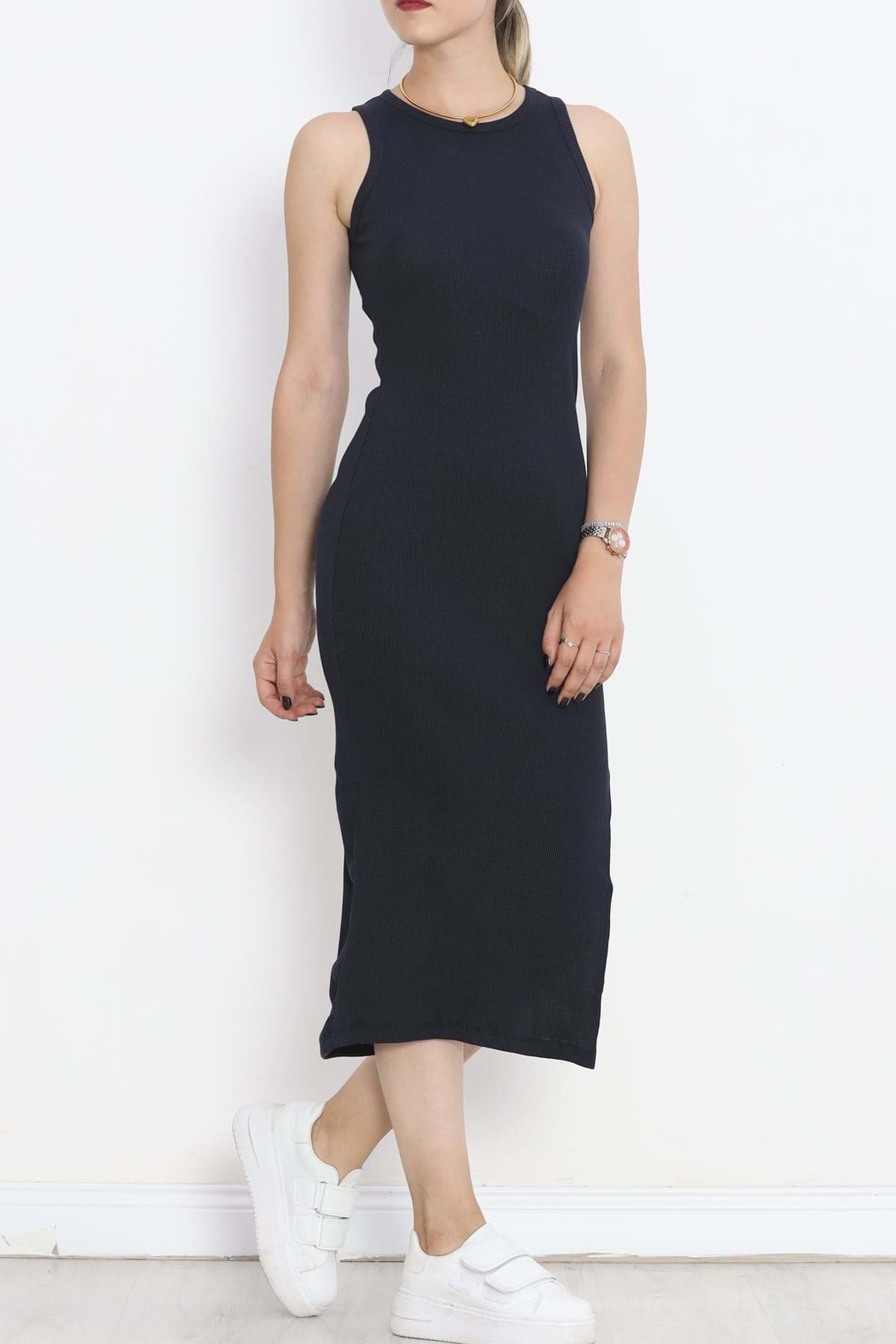 Bisiklet Yaka Yırtmaçlı Elbise Lacivert - 16691.1567.