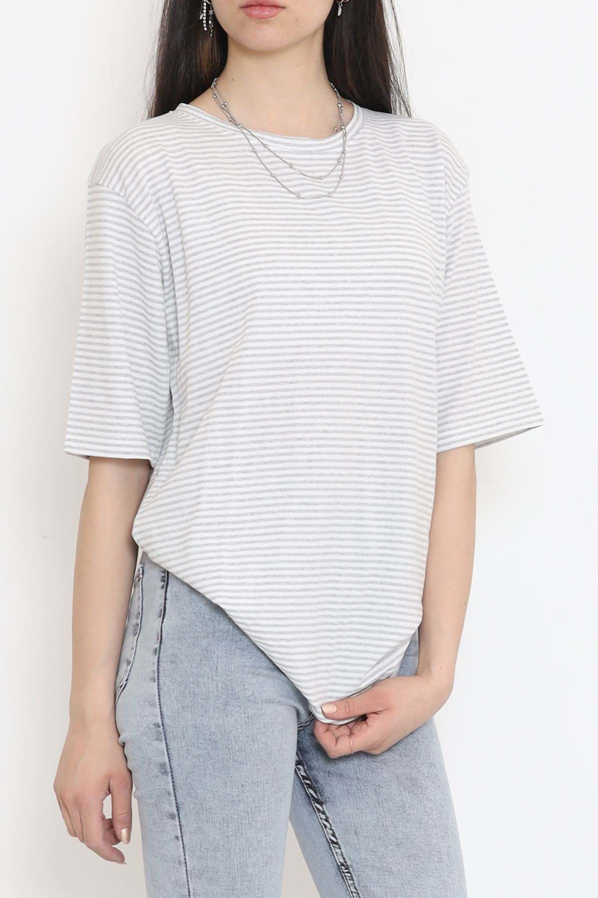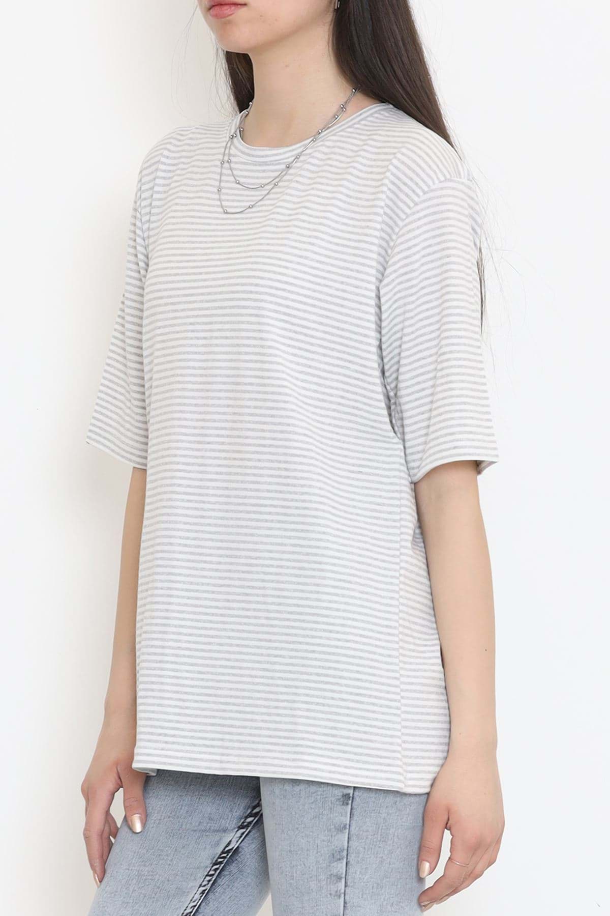 Çizgili Tişört Gribeyaz - 18181.1792.