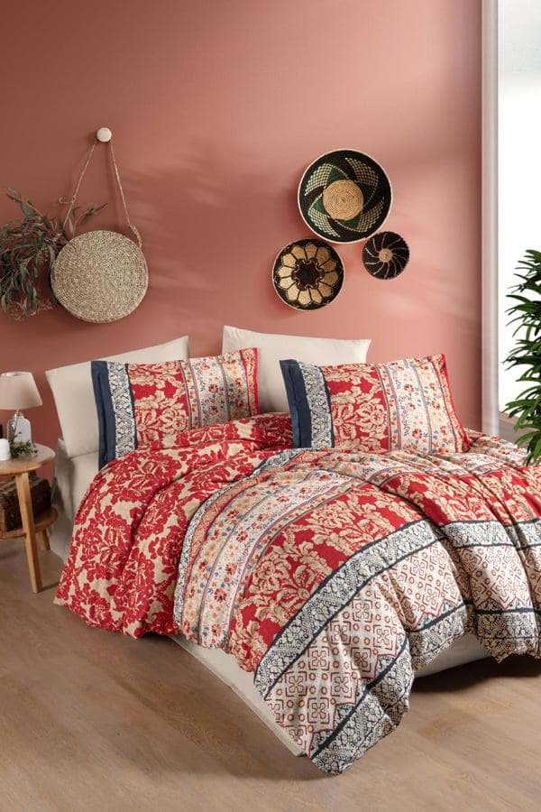 Clasy Ranforce Nevresim Takımı Çift Kişilik Miza V1 Kırmızı
