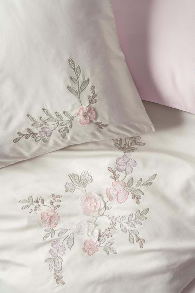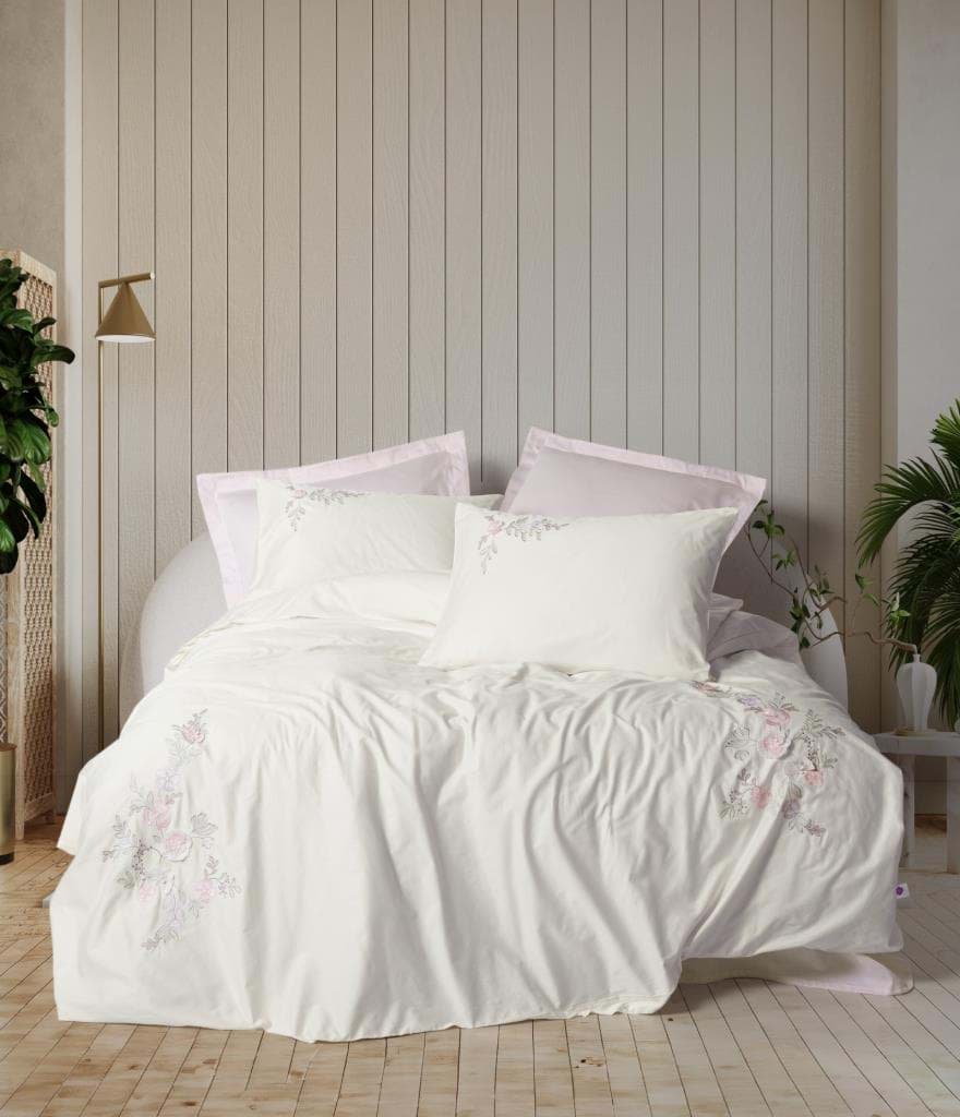 Cotton Box 3D Nakışlı Çift Kişilik Saten Nevresim Takımı Yedda Pudra