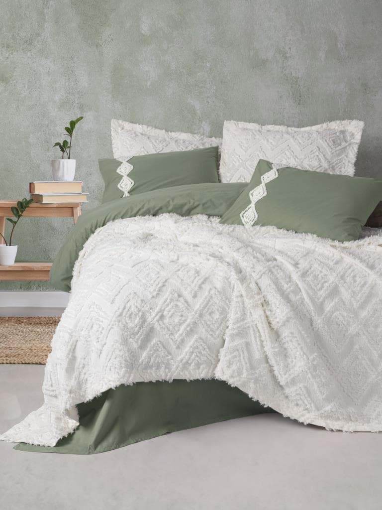 • Yatak Örtüsü ve Dekoratif Yastık Kılıfı: %100 Polyester Jakarlı Kabartma Desenli