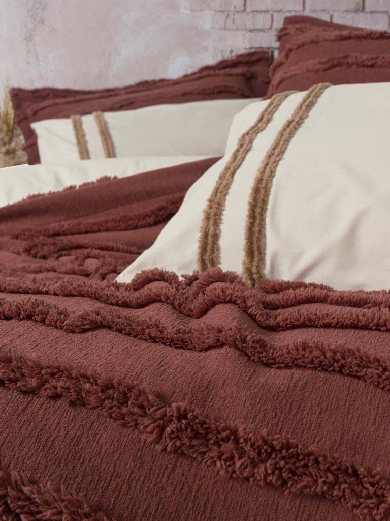 - Yatak Örtüsü ve Dekoratif Yastık Kılıfı: %100 Polyester Jakarlı Kabartma Desenli