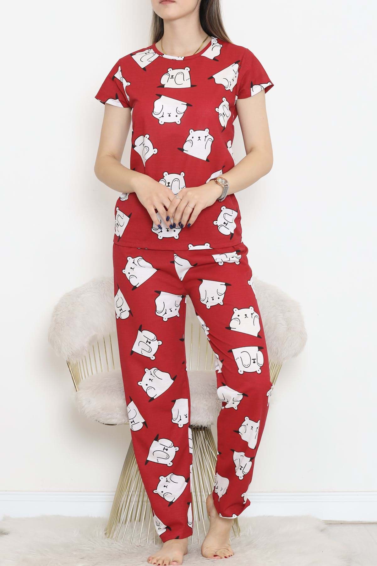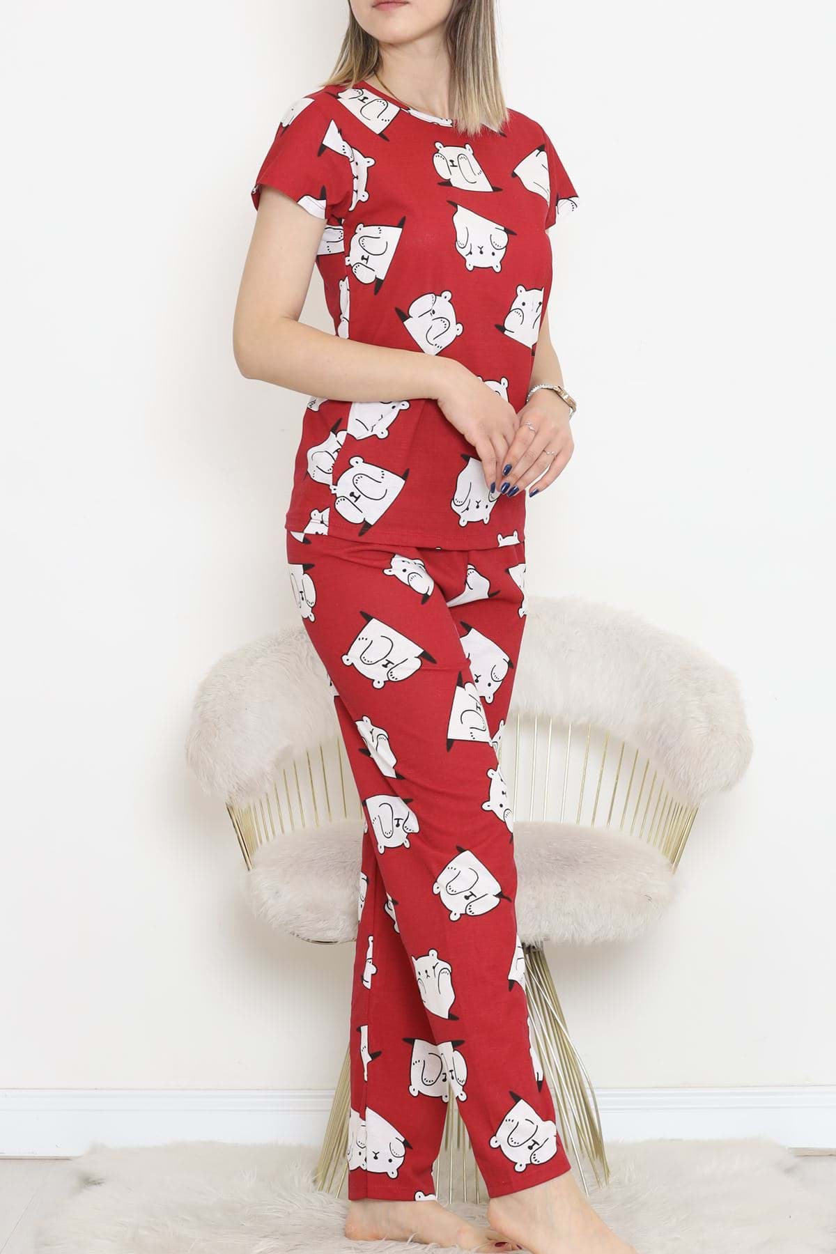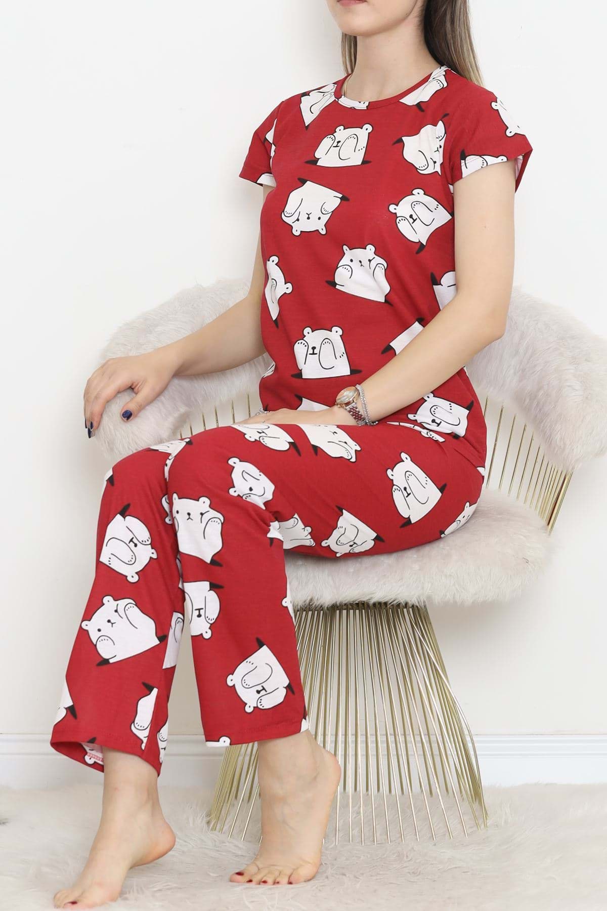 • Desenli Pijama Takımı Bordobeyaz - 130.1287. resmi