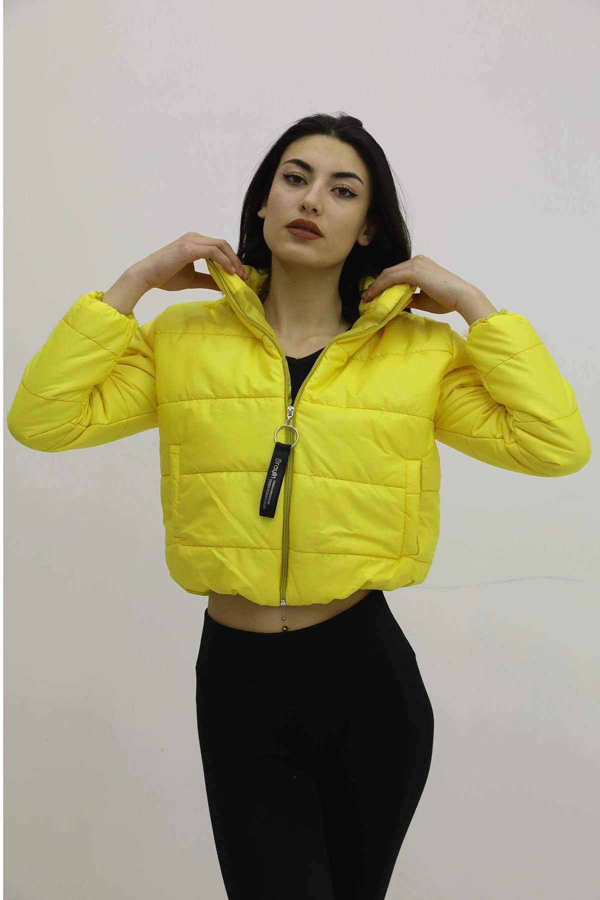 Fermuarlı Çift Cepli Şişme Mont Sarı - Lks9294