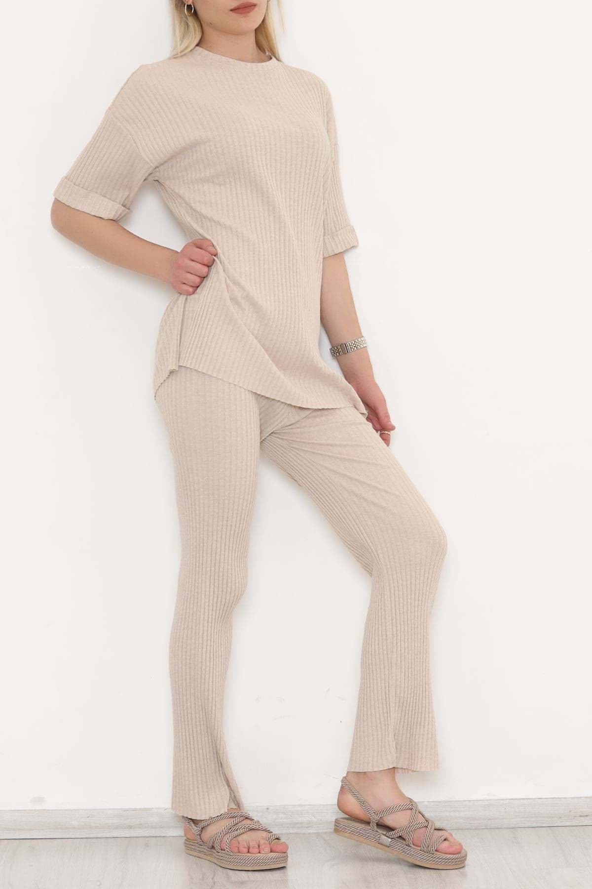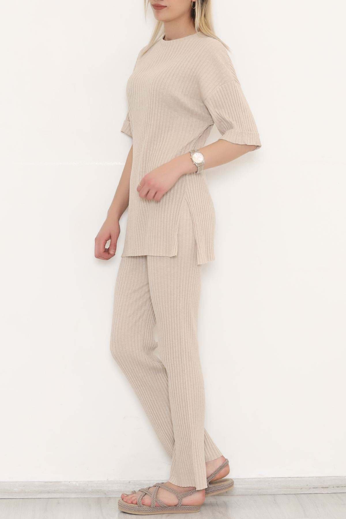 • AçıklamaÜrün Özellikleri;   Üst Boy: 79 cm. Alt Boy: 102 cm. Alt Bel Genişliği: 35 cm. Alt İç Bacak Boyu: 69 xx. Alt Bel Yüksekliği: 32 cm. Alt Basen Genişliği: 47 cm. Kalıp: Salaş Kumaş: Kaşkorse Özellik: Üst iki yandan yırtmaçlı Aksesuar: - Likra: Yok