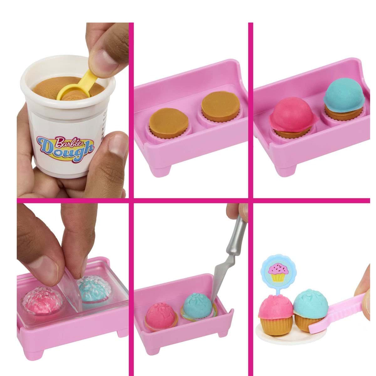 Hamur yenmez. Bebek tek başına ayakta duramaz. Renkler ve süslemeler çeşitlilik gösterebilir. Özellik 1 Çocuklar bu 18 parçalı yaratıcı oyun setiyle Barbie® 'Malibu' bebeğe bu büyük macerada kafede çalışırken eşlik edebilir.