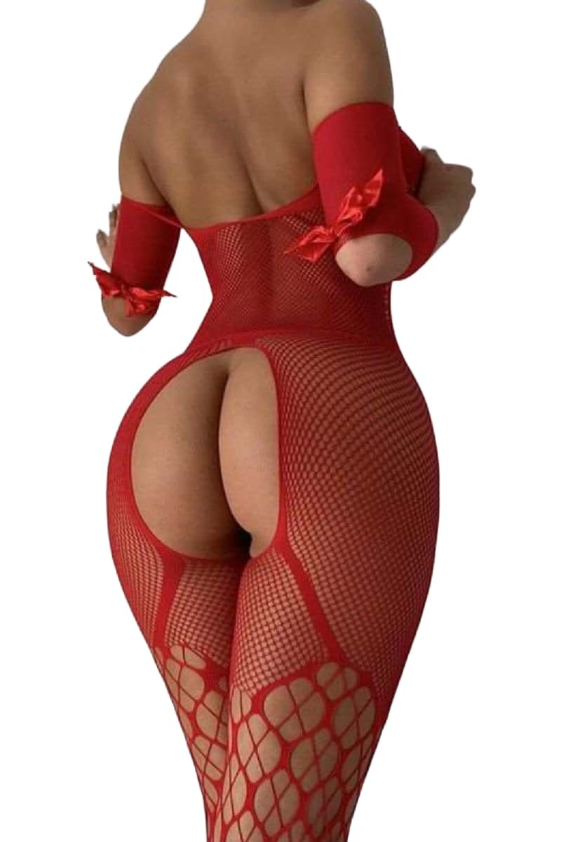 Kadın Babydoll Fantezi Kıyafet Vücut Çorabı D30010 Kırmızı