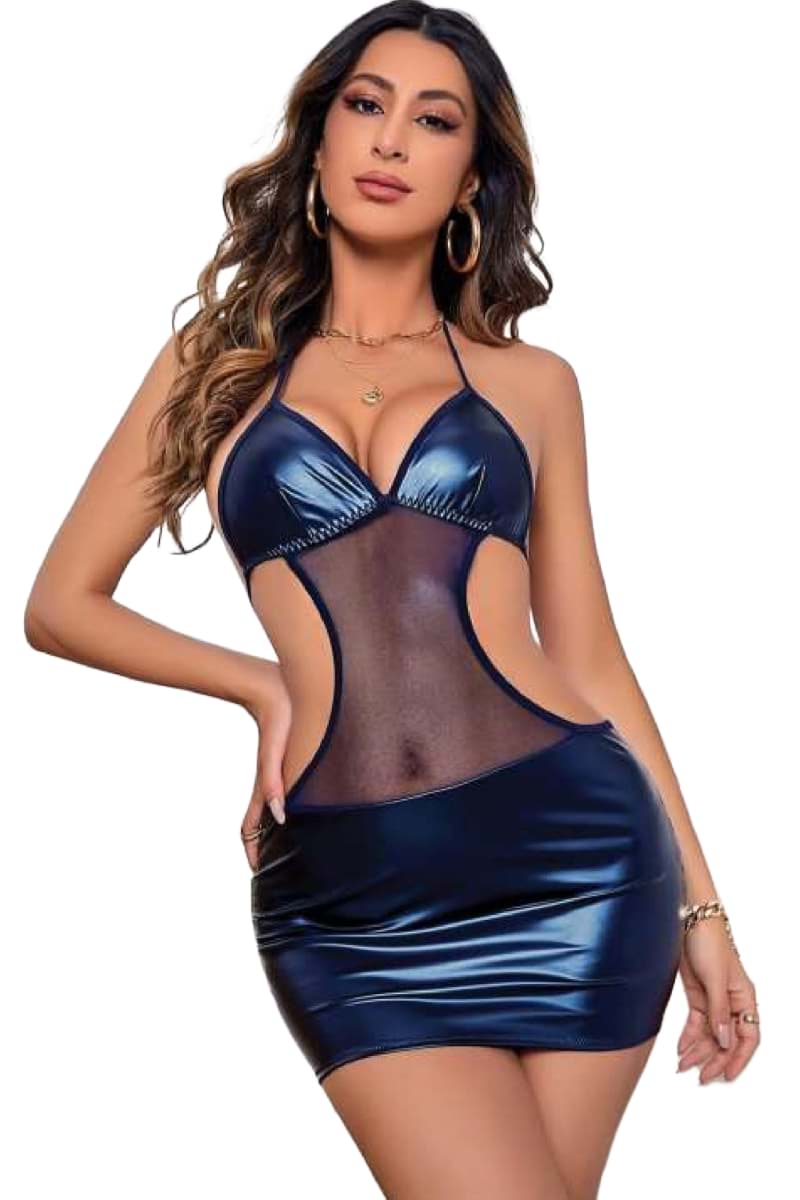 Kadın Fantezi Deri Kostüm Harness Erotik Kıyafet D21008 Mavi