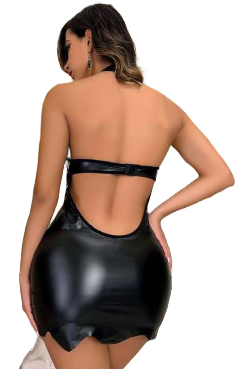 Kadın Fantezi Deri Kostüm Harness Erotik Kıyafet D21023 Siyah