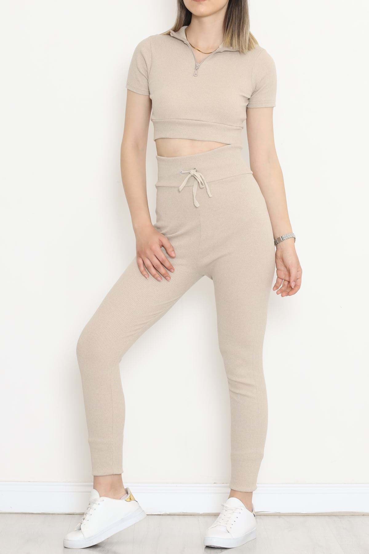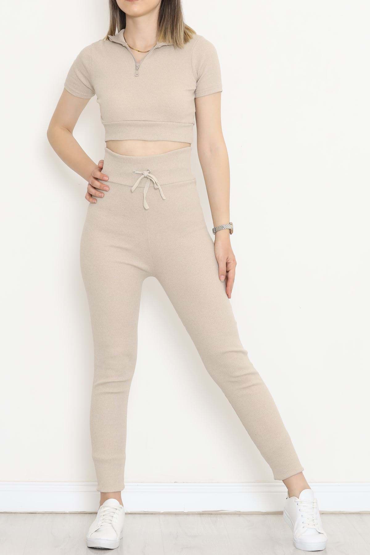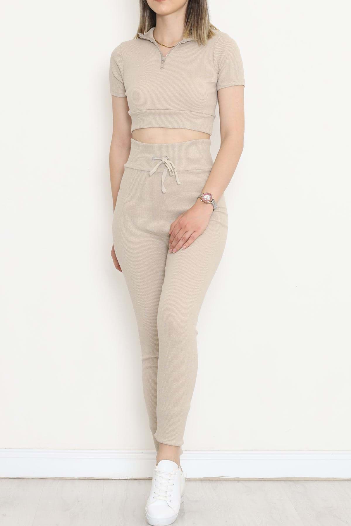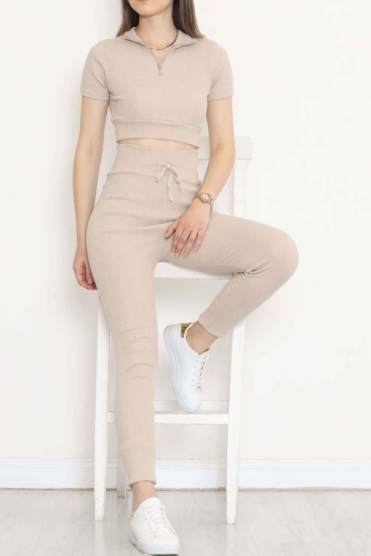 Kaşkorse Fermuarlı Kısakol Takım Bej - 18517.1567.