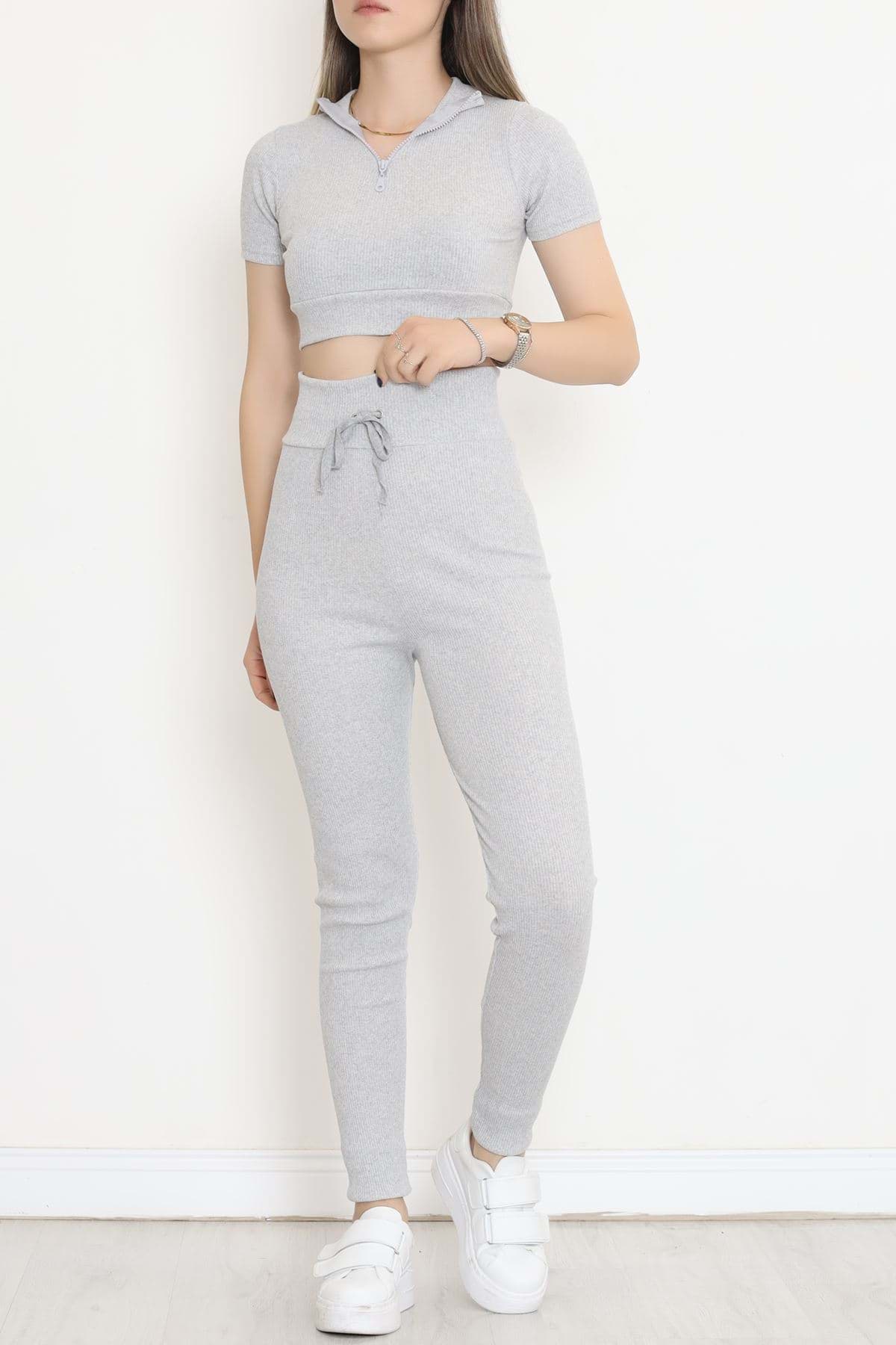 Kaşkorse Fermuarlı Kısakol Takım Gri - 18517.1567.