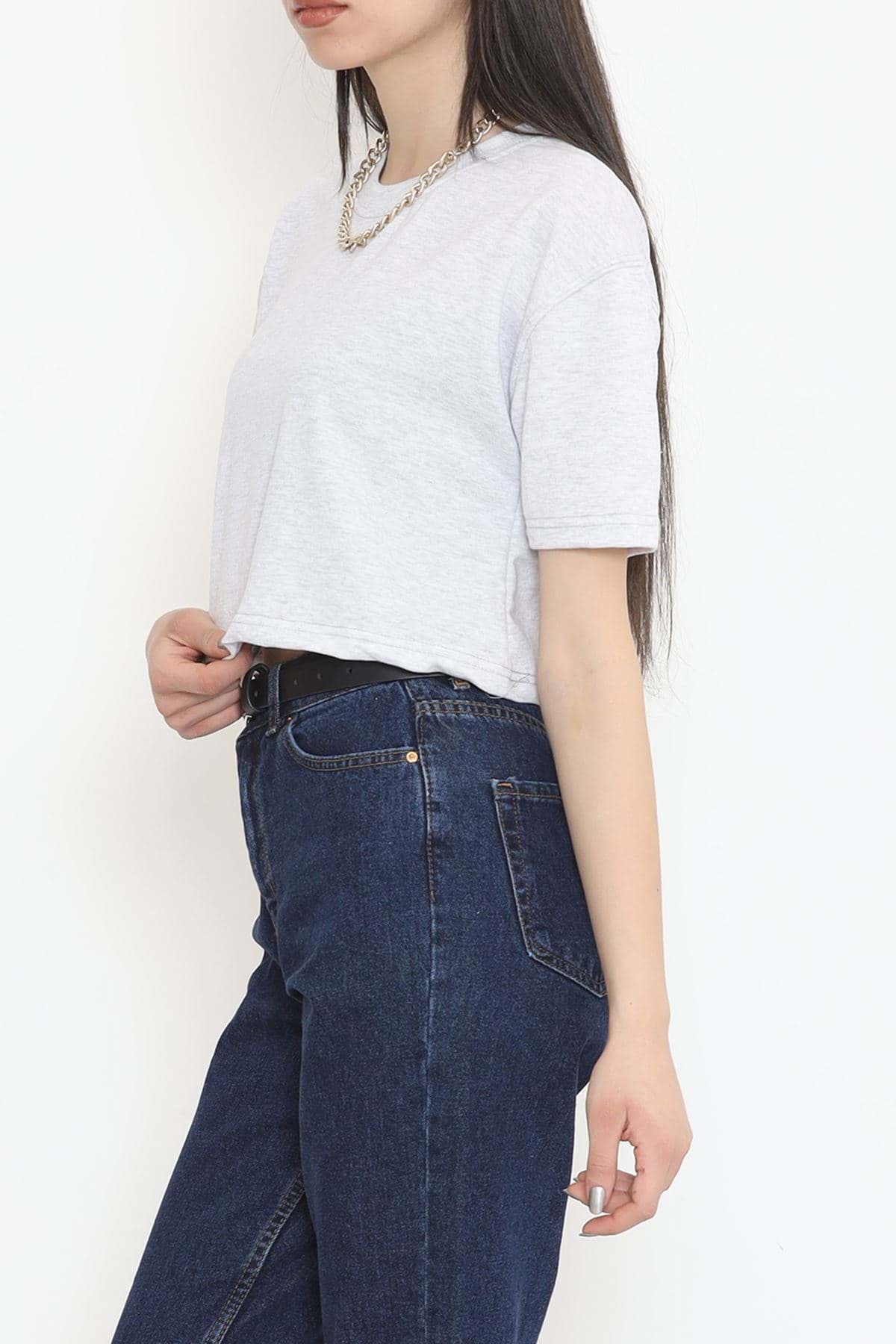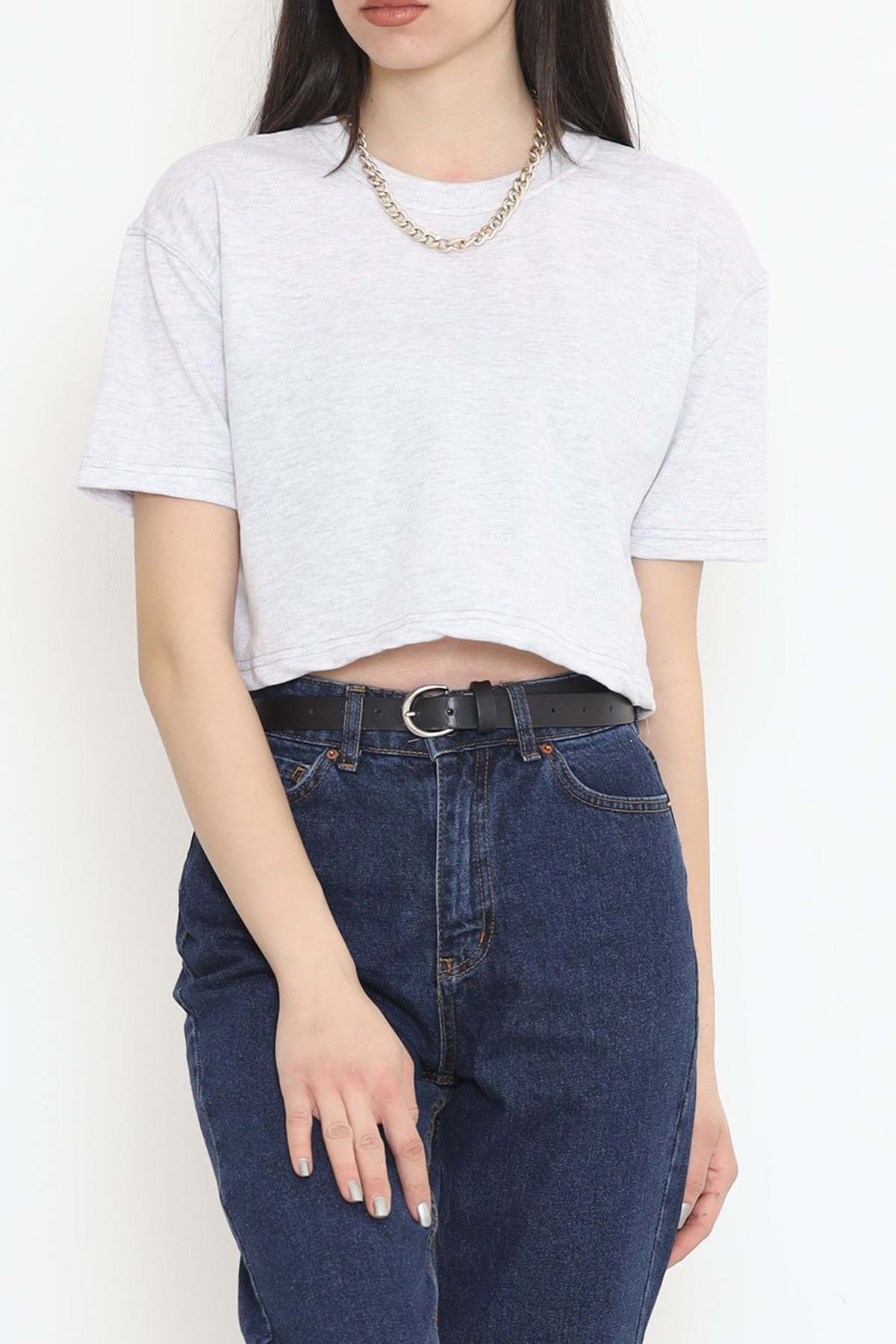 İki İplik Crop Tişört Gri - 15151.751. resmi