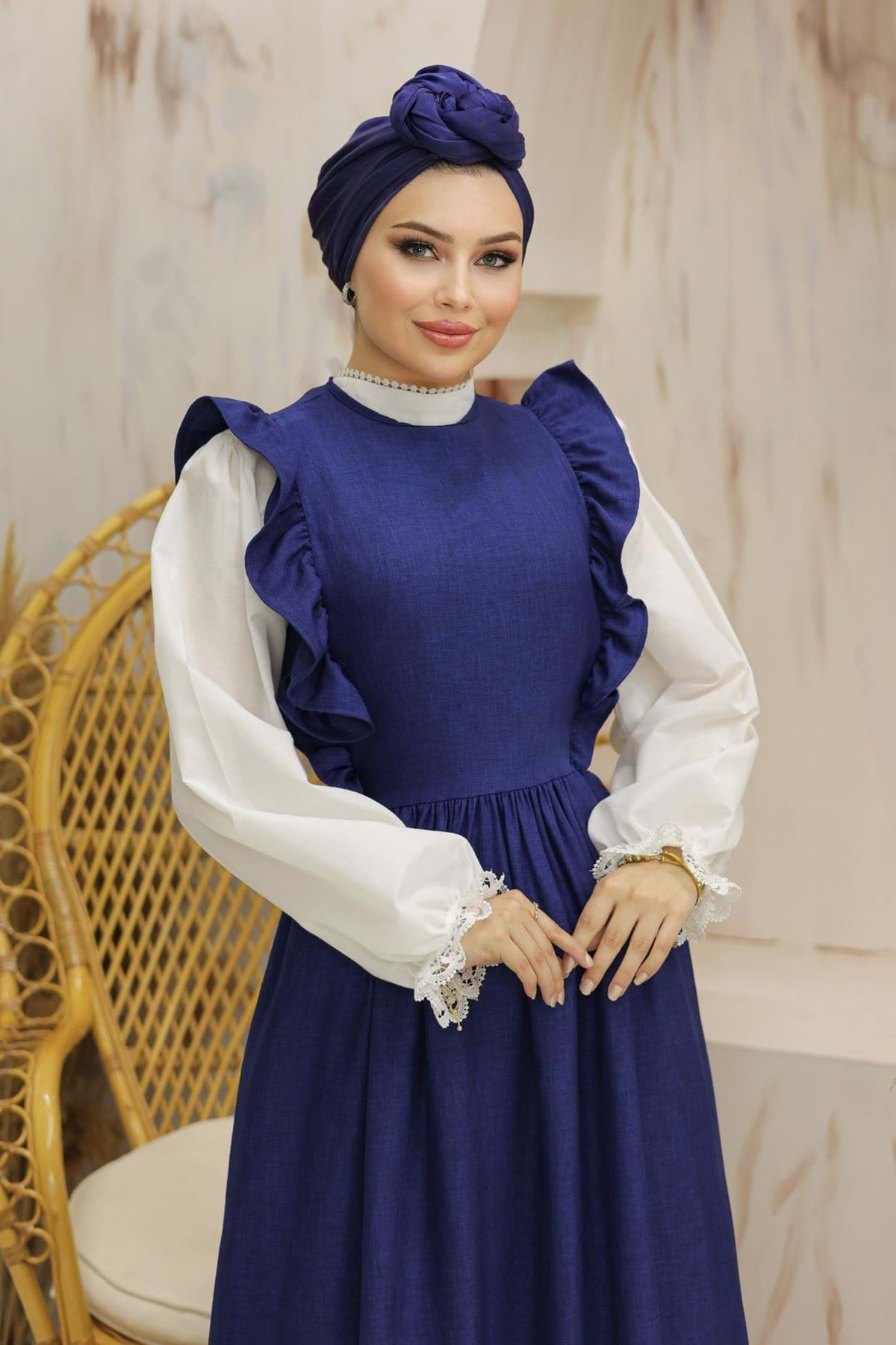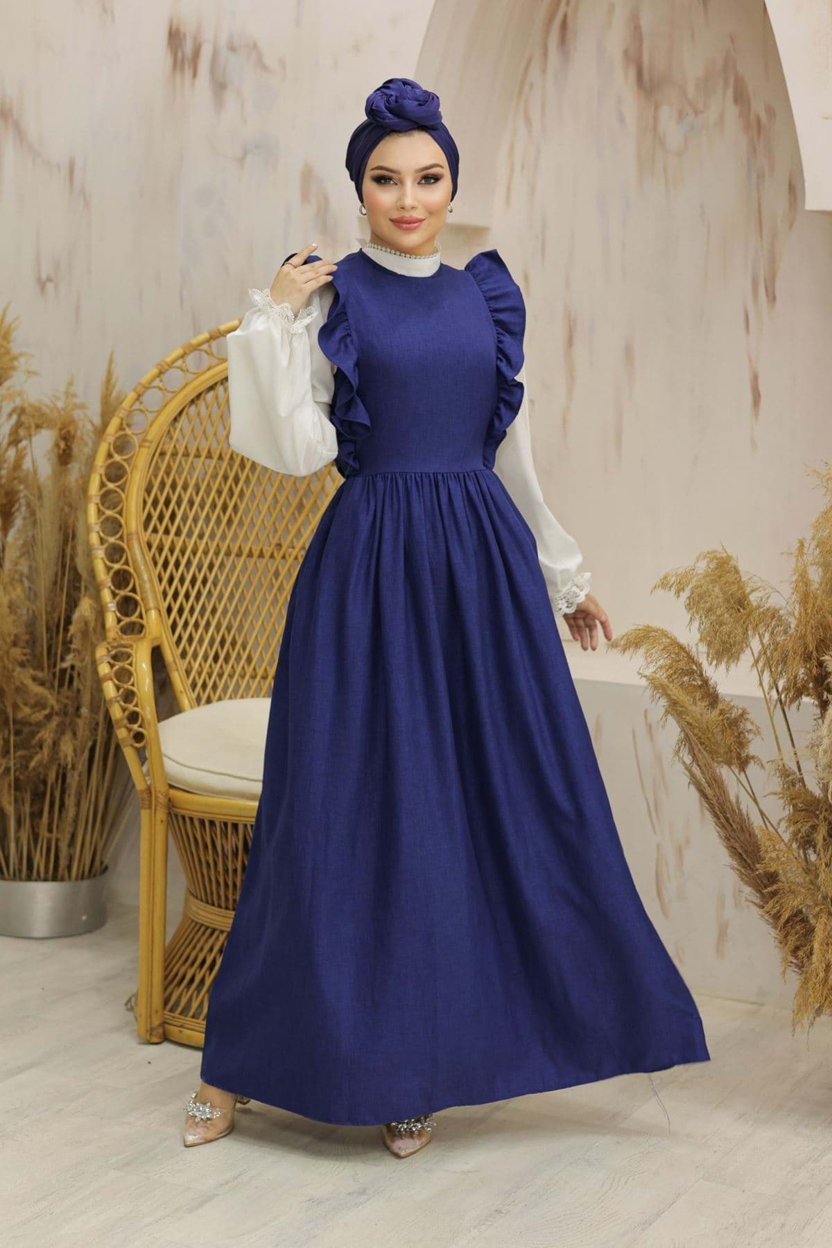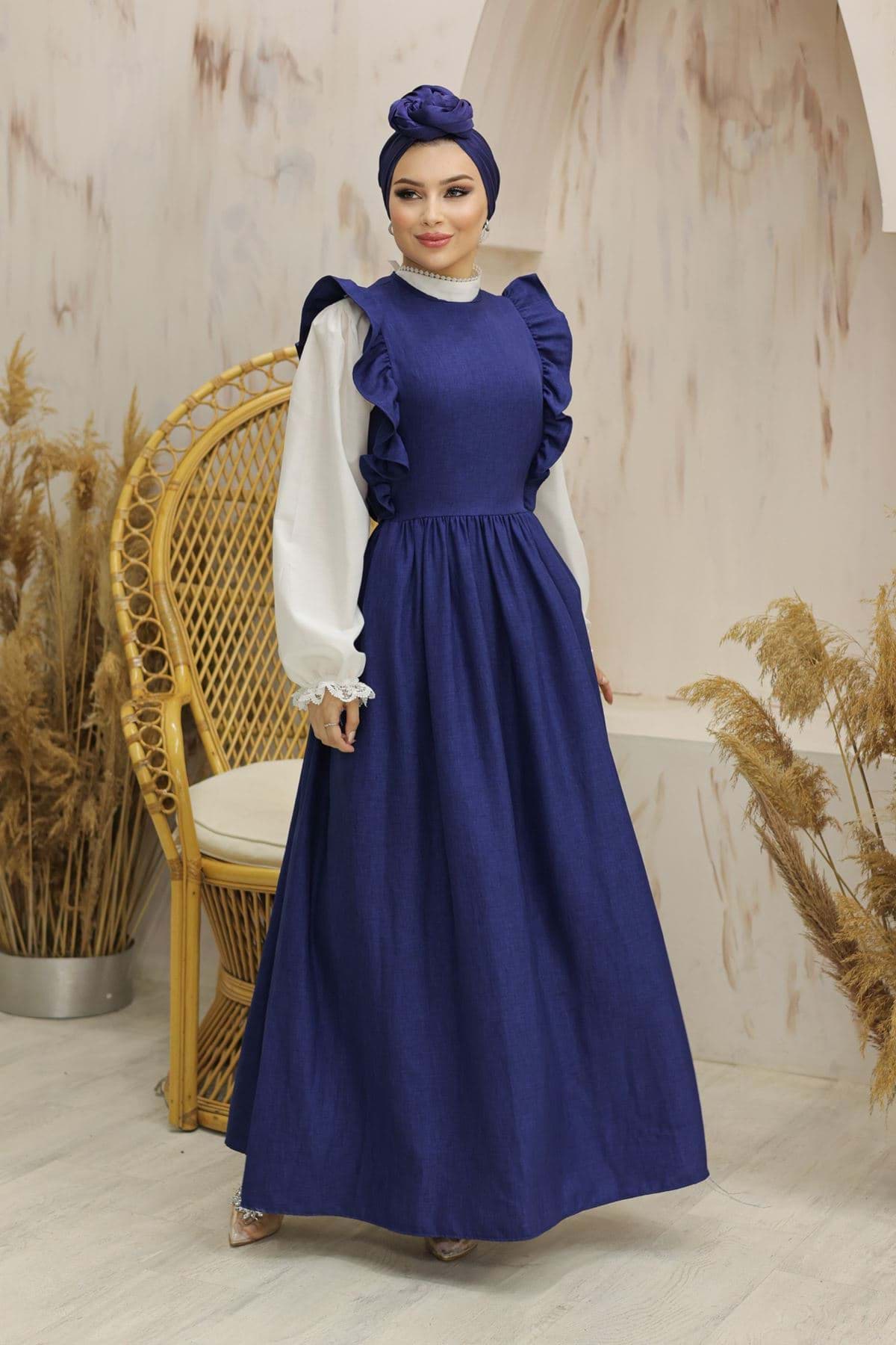 • Kol Fırfırlı Elbise Saks - 20332.1778. resmi