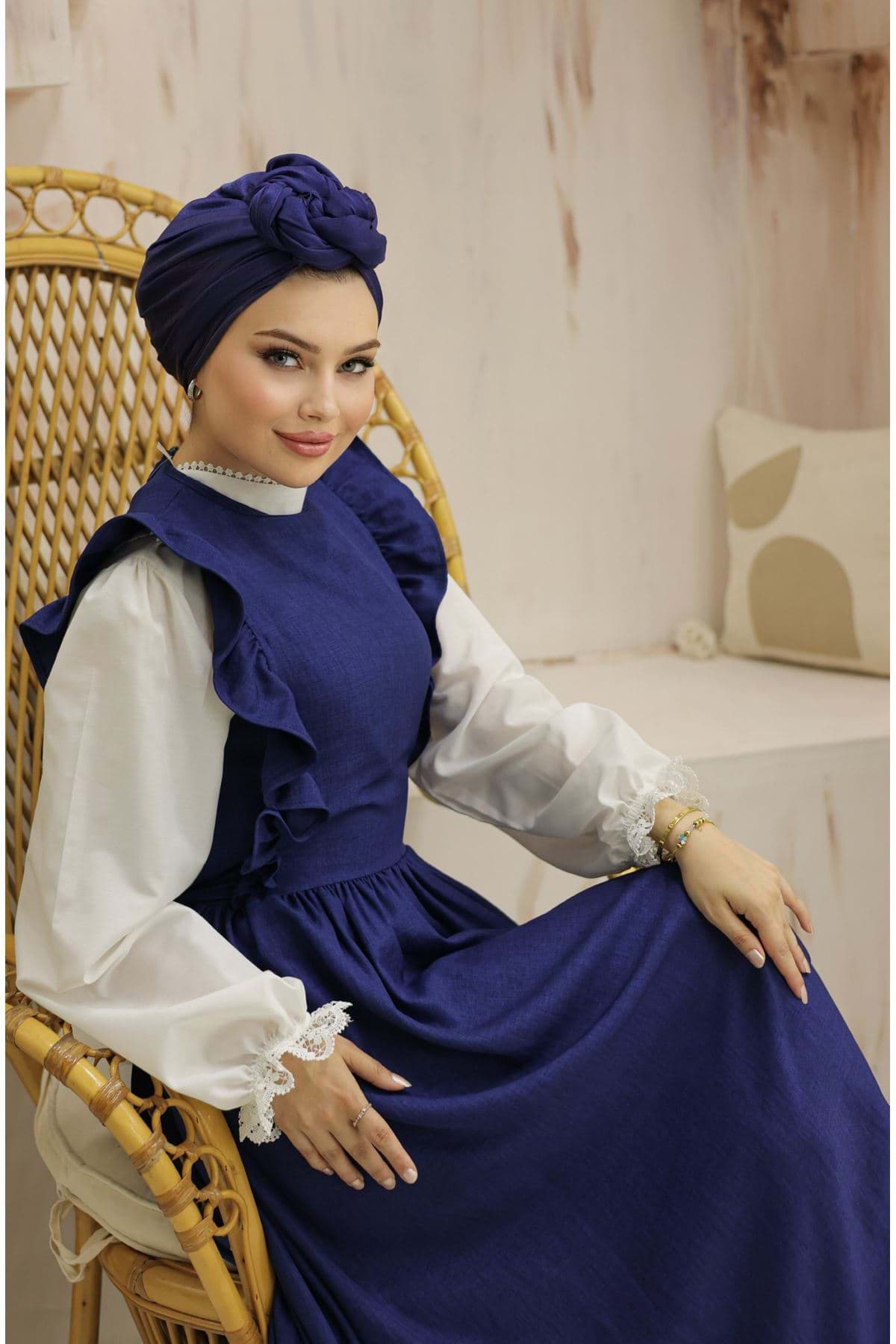 Kol Fırfırlı Elbise Saks - 20332.1778. resmi