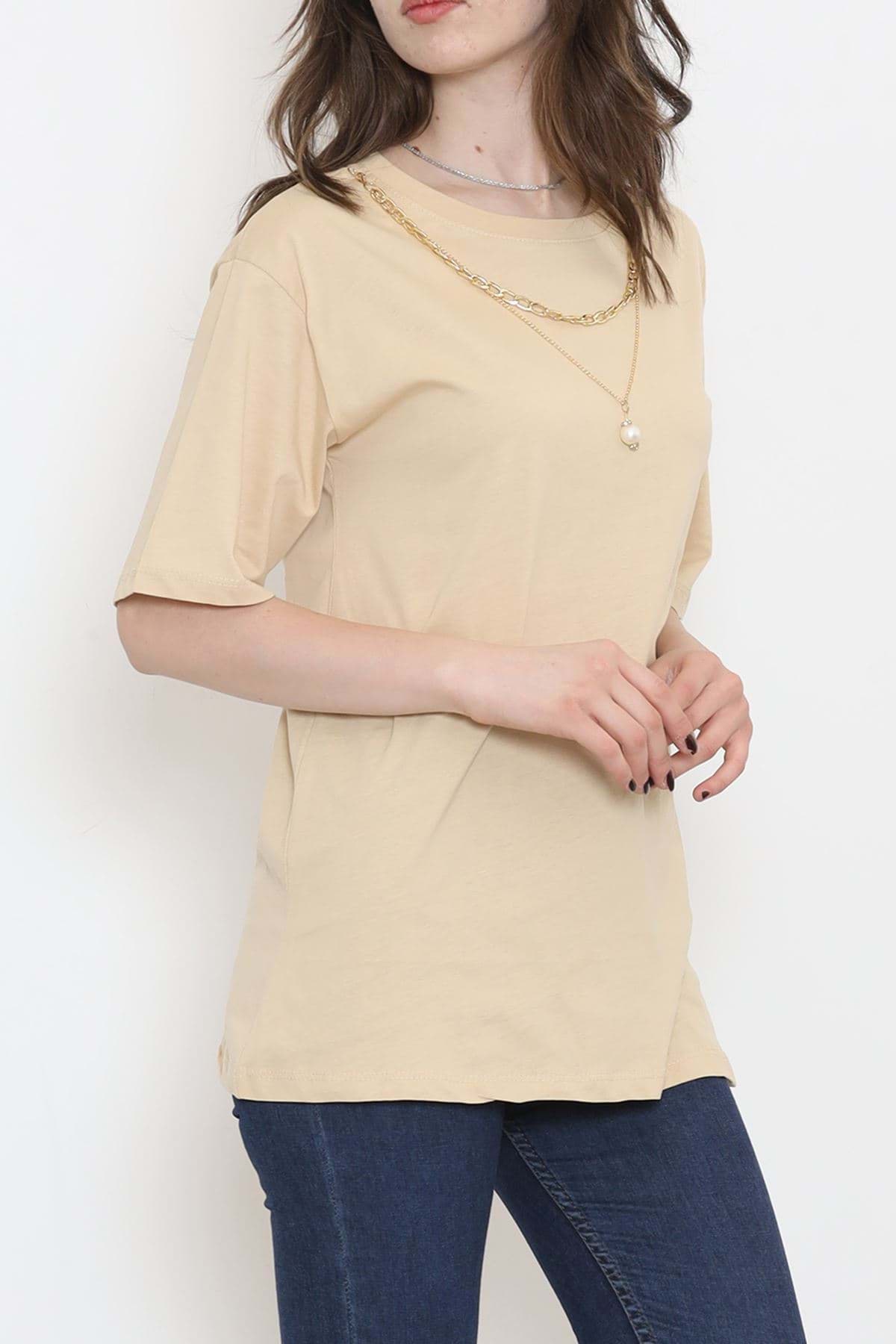 Kolye Detaylı Tişört Sütlükahve - 2520.555.