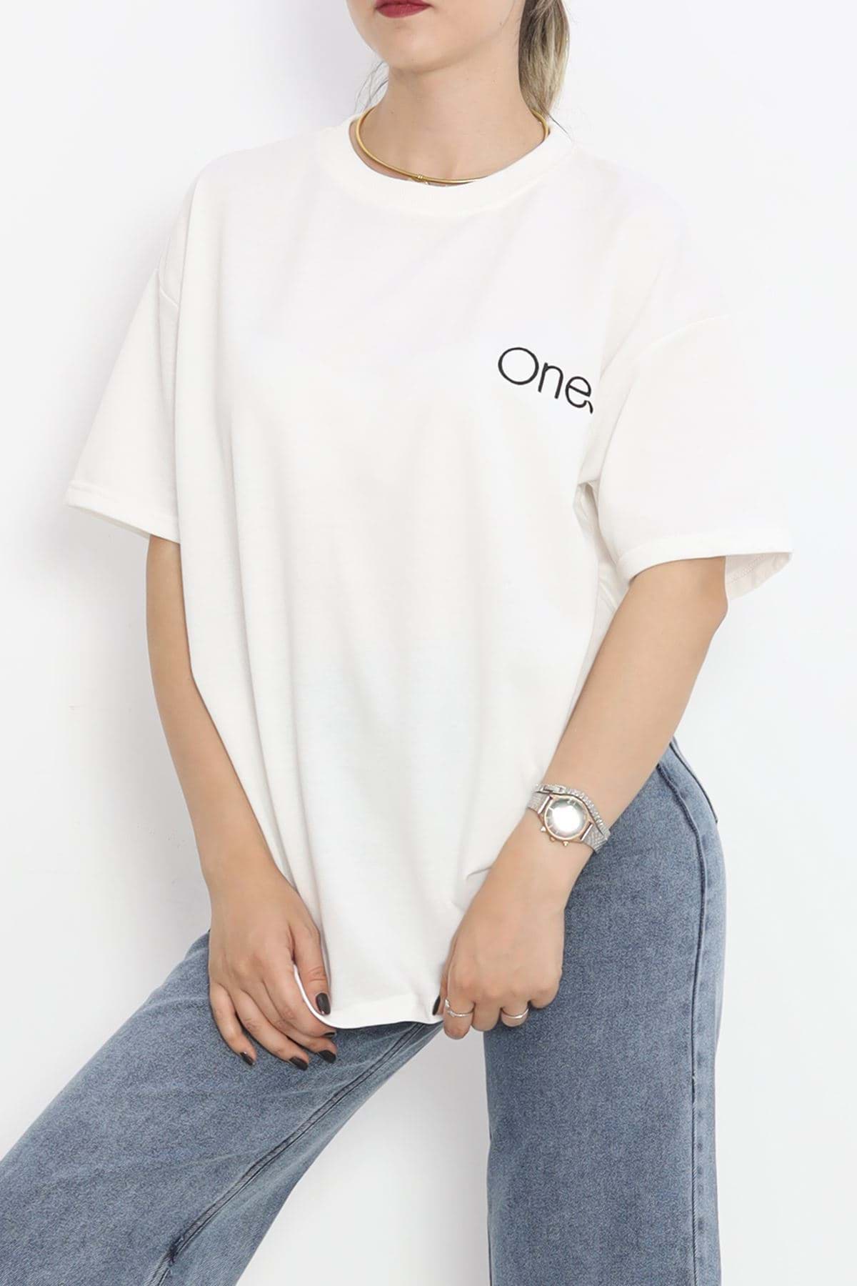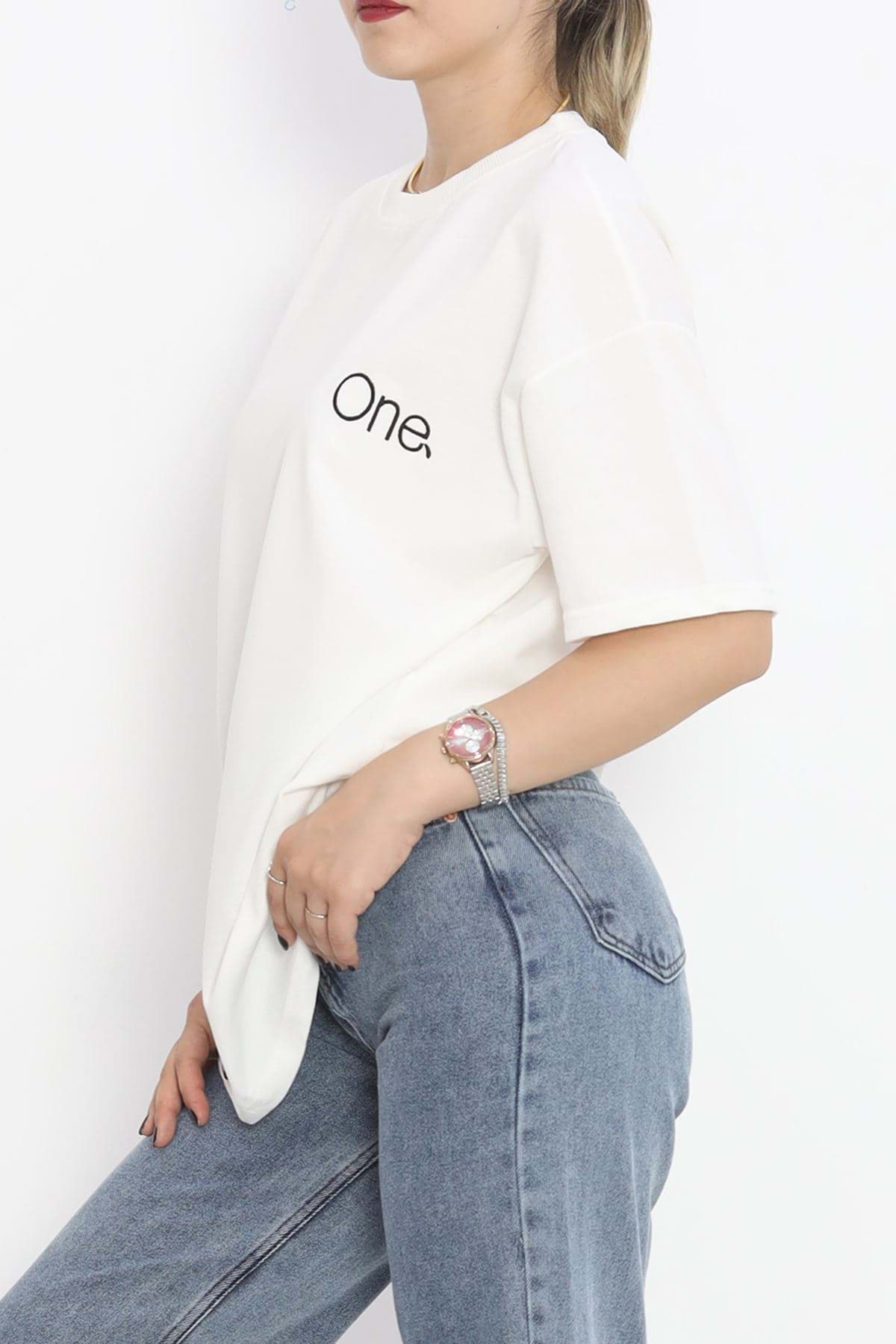 Nakışlı İki İplik Tişört Ekru - 18745.751. resmi