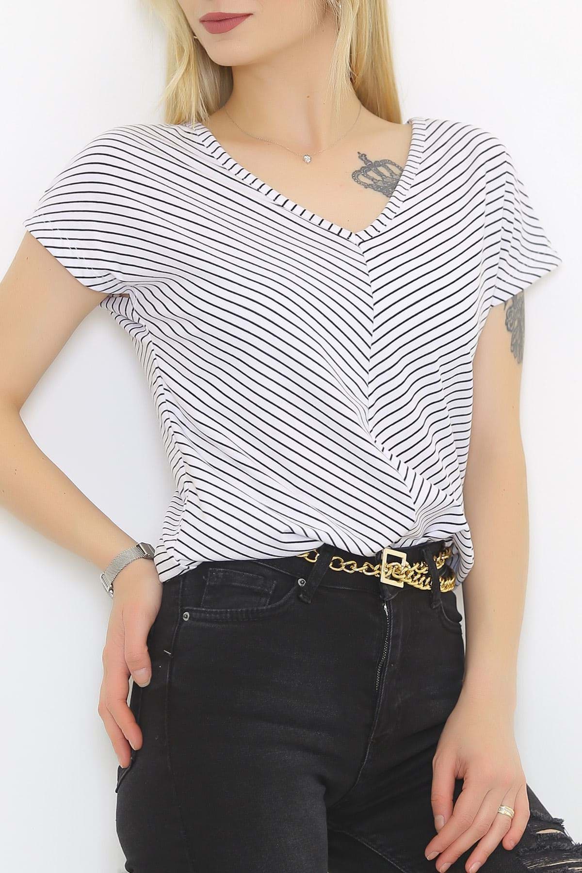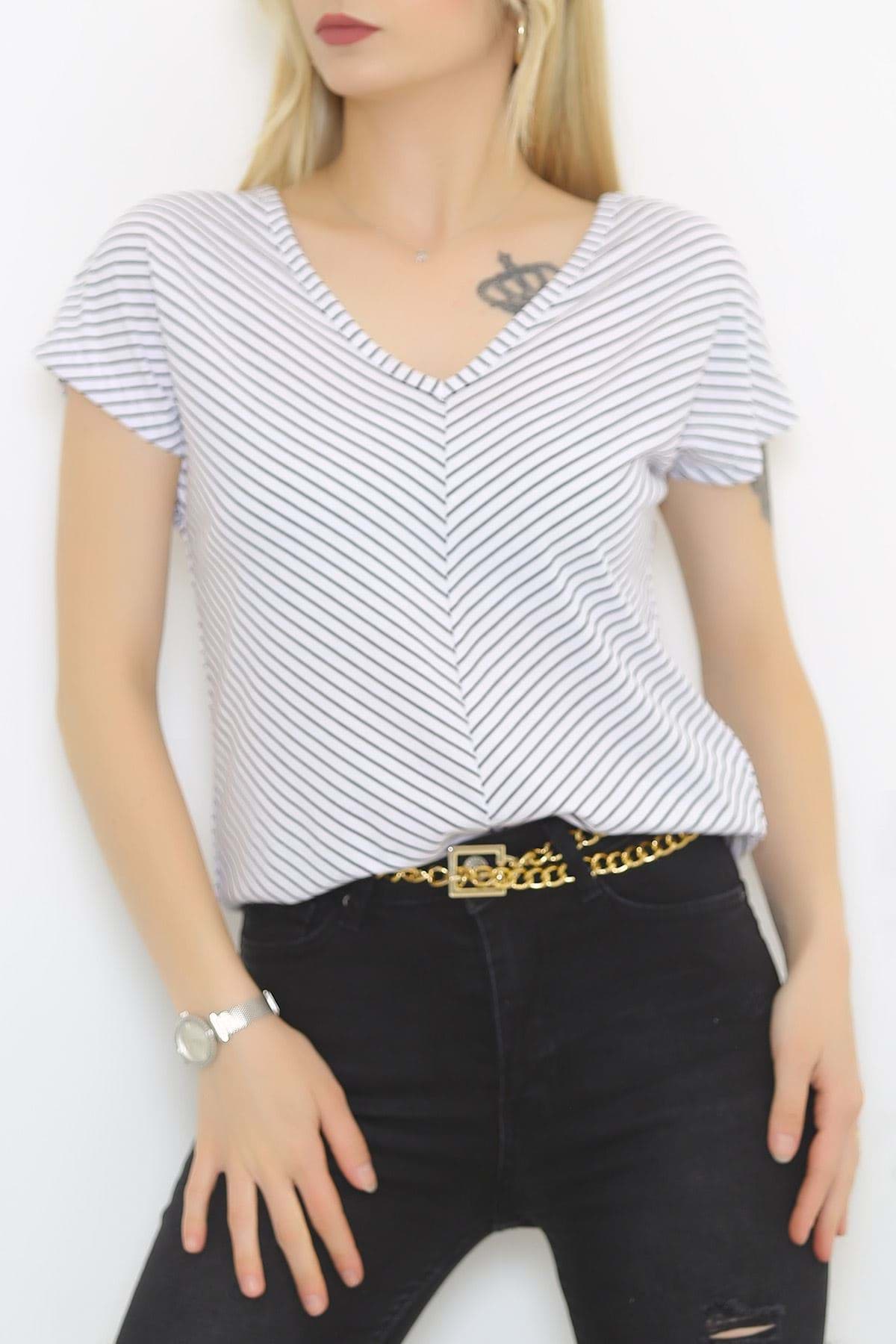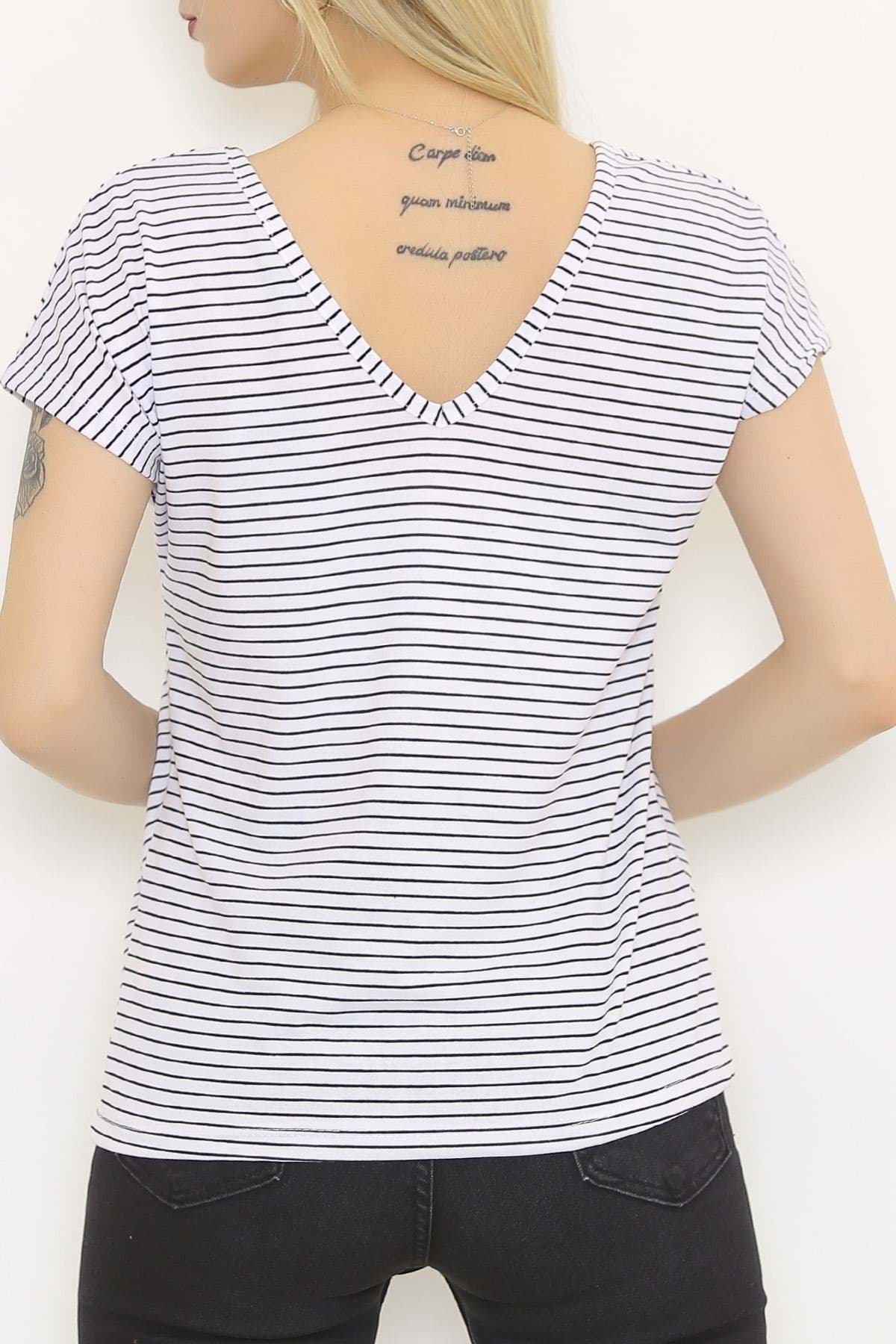 Ön Arka V Yaka Tişört Beyaz - 2111.555.
