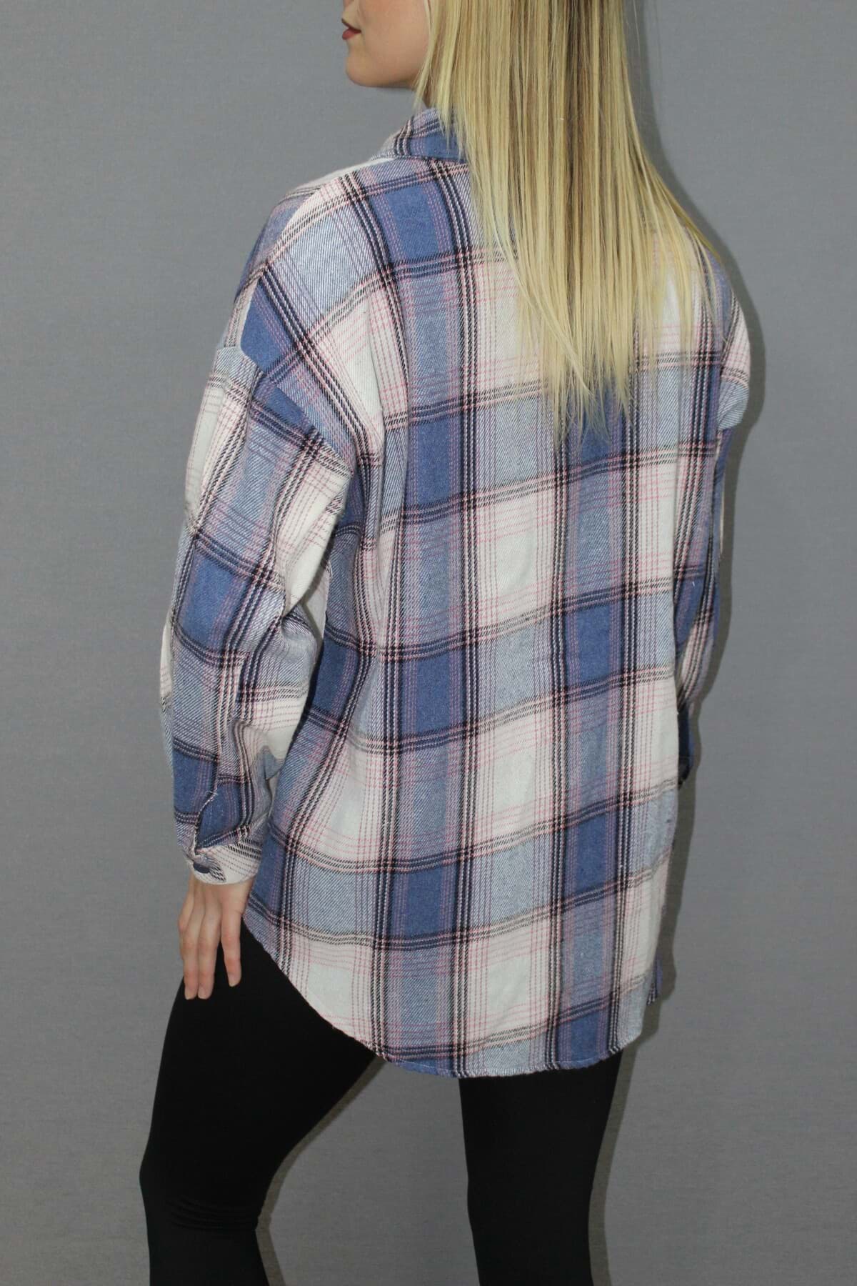 Oversize Ekose Gömlek Mavi - 4686.140