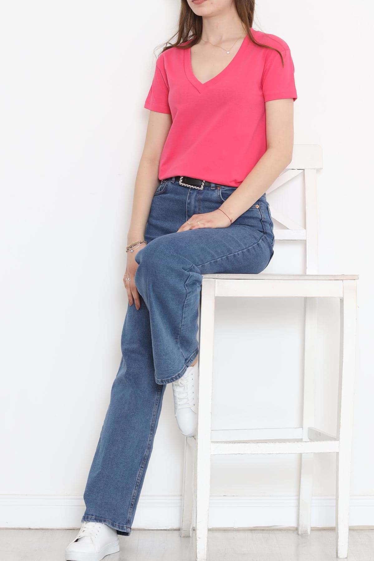 Süprem V Yaka Tişört Koyupembe - 4001.1567. resmi