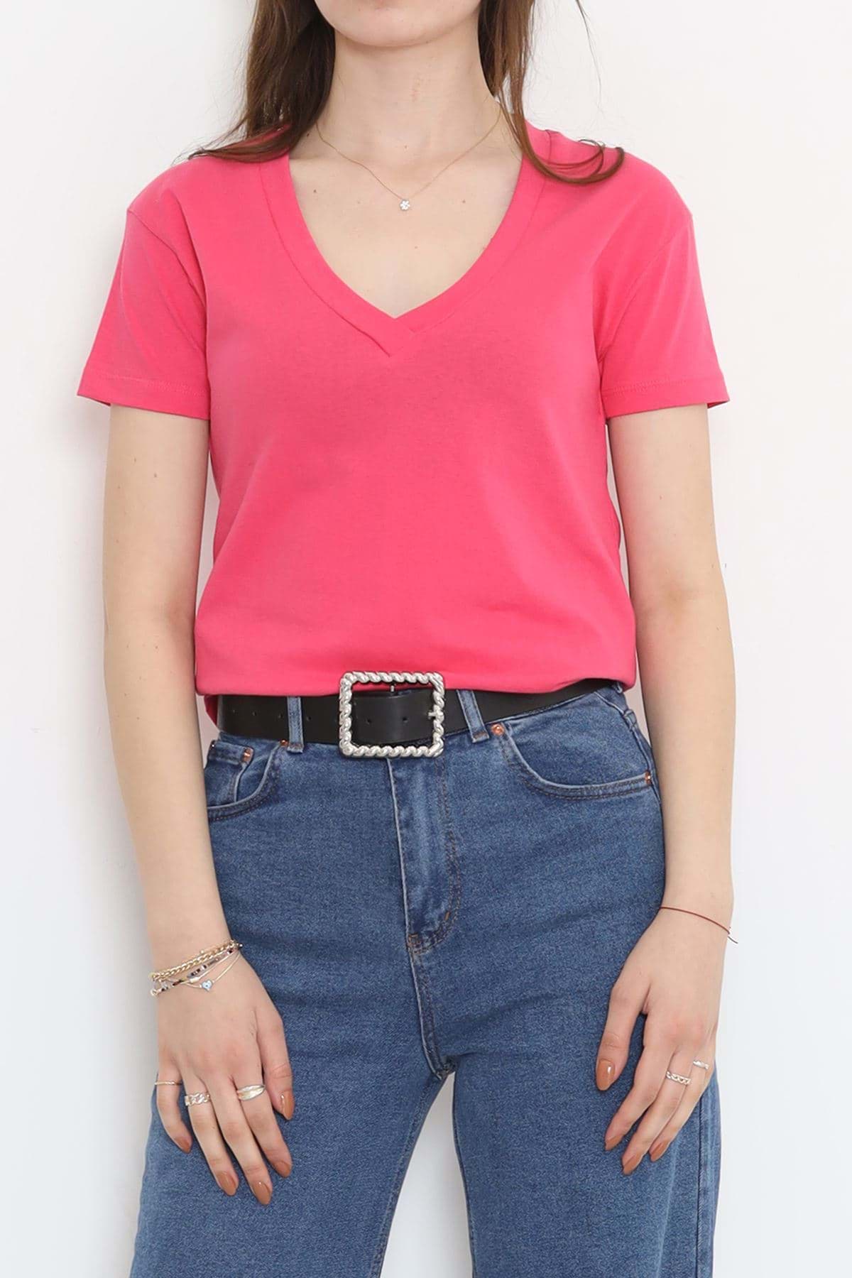 Süprem V Yaka Tişört Koyupembe - 4001.1567.