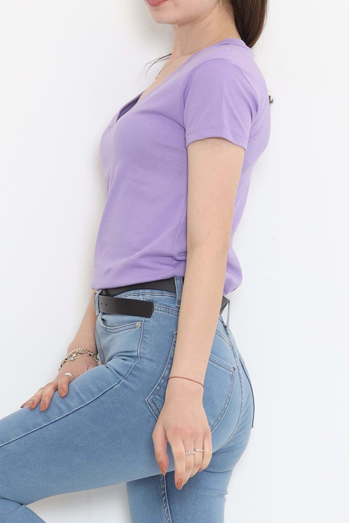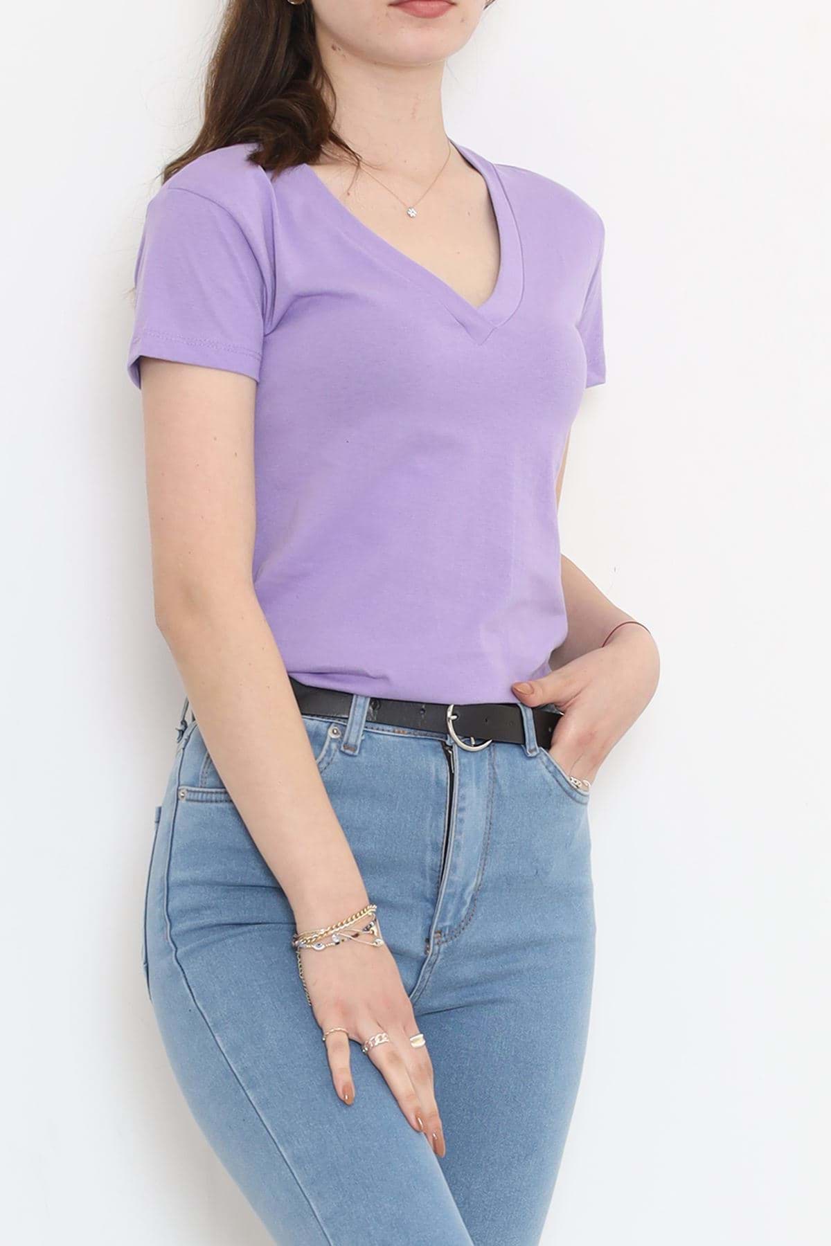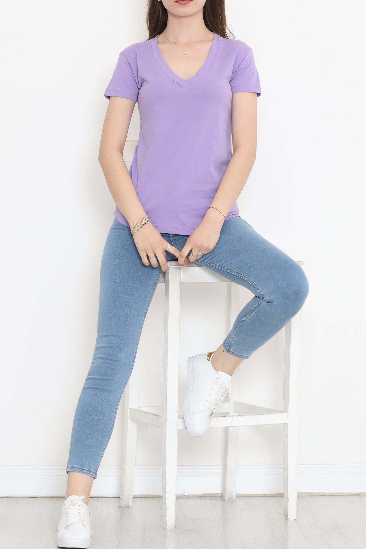 Süprem V Yaka Tişört Lila - 4001.1567.
