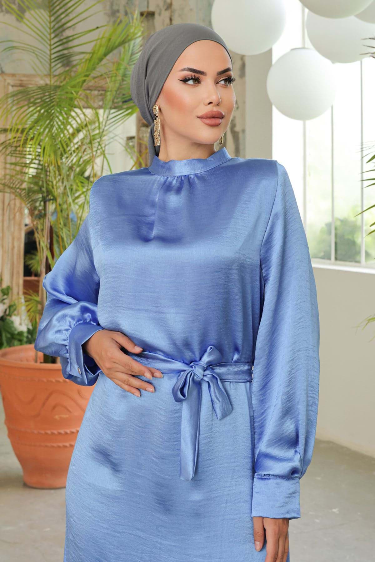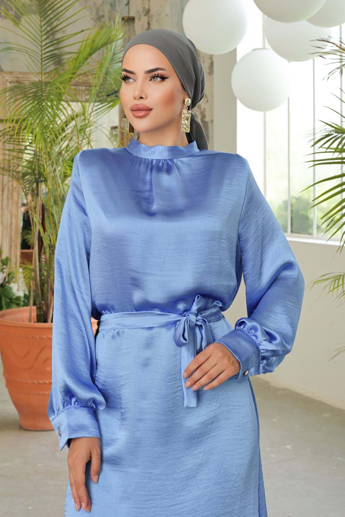 Saten Elbise Mavi - 20329.1778. resmi