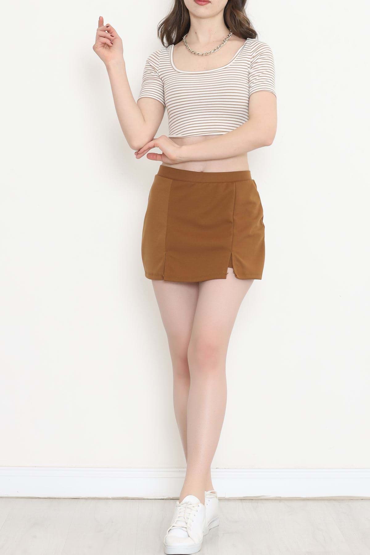 Scuba Kumaş Şort Etek Açıkkahve - 16434.1778.
