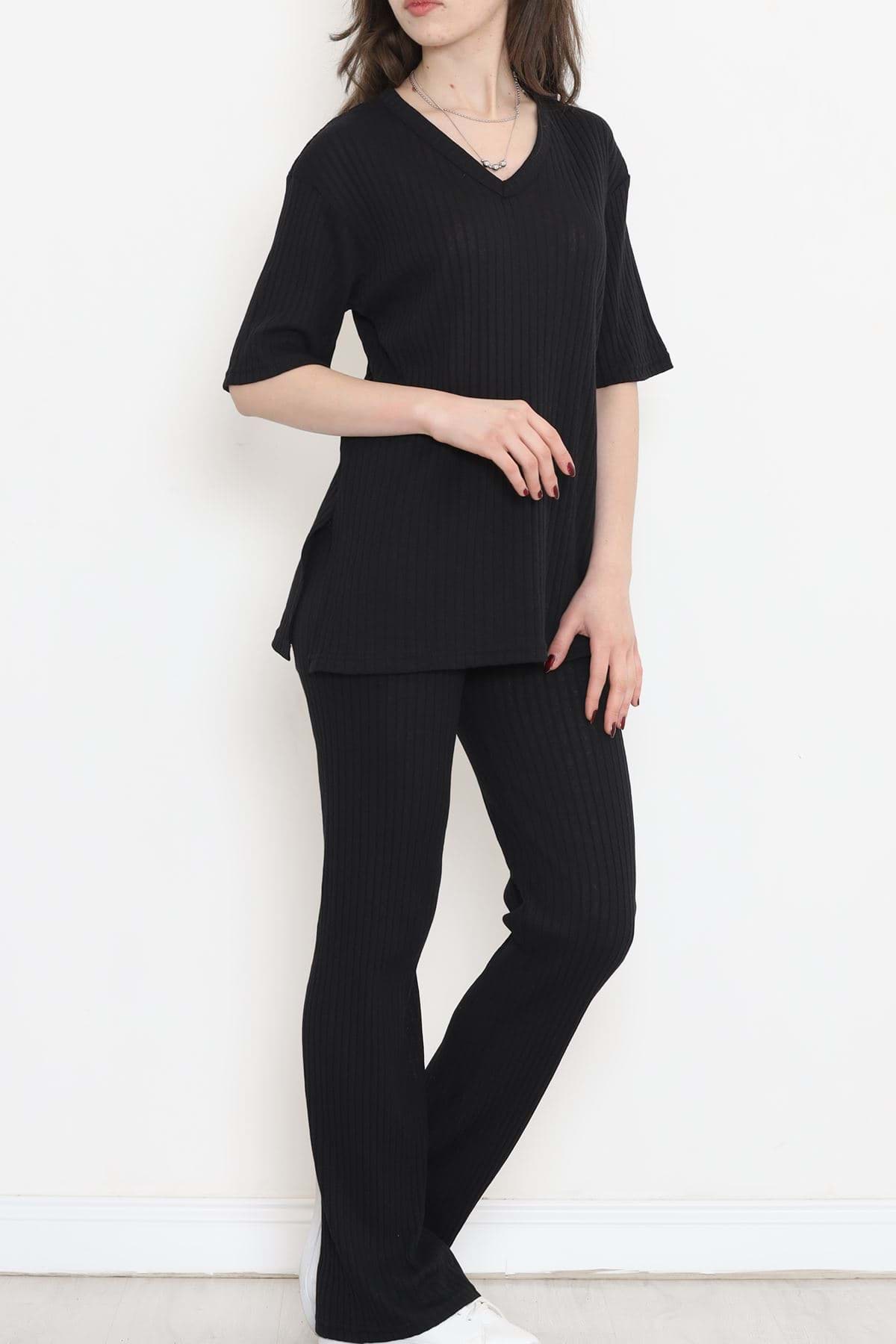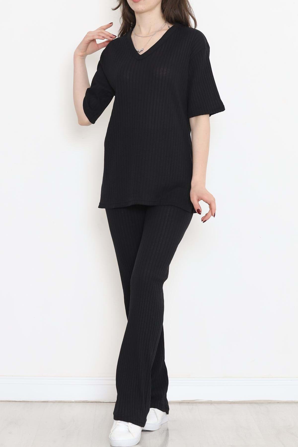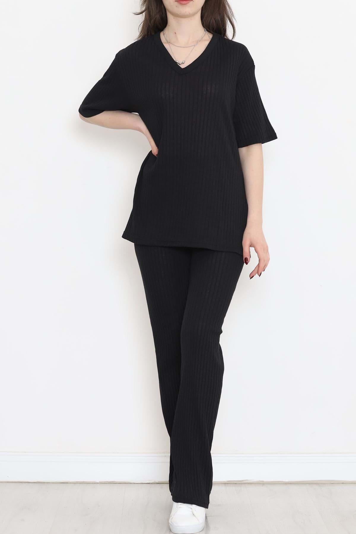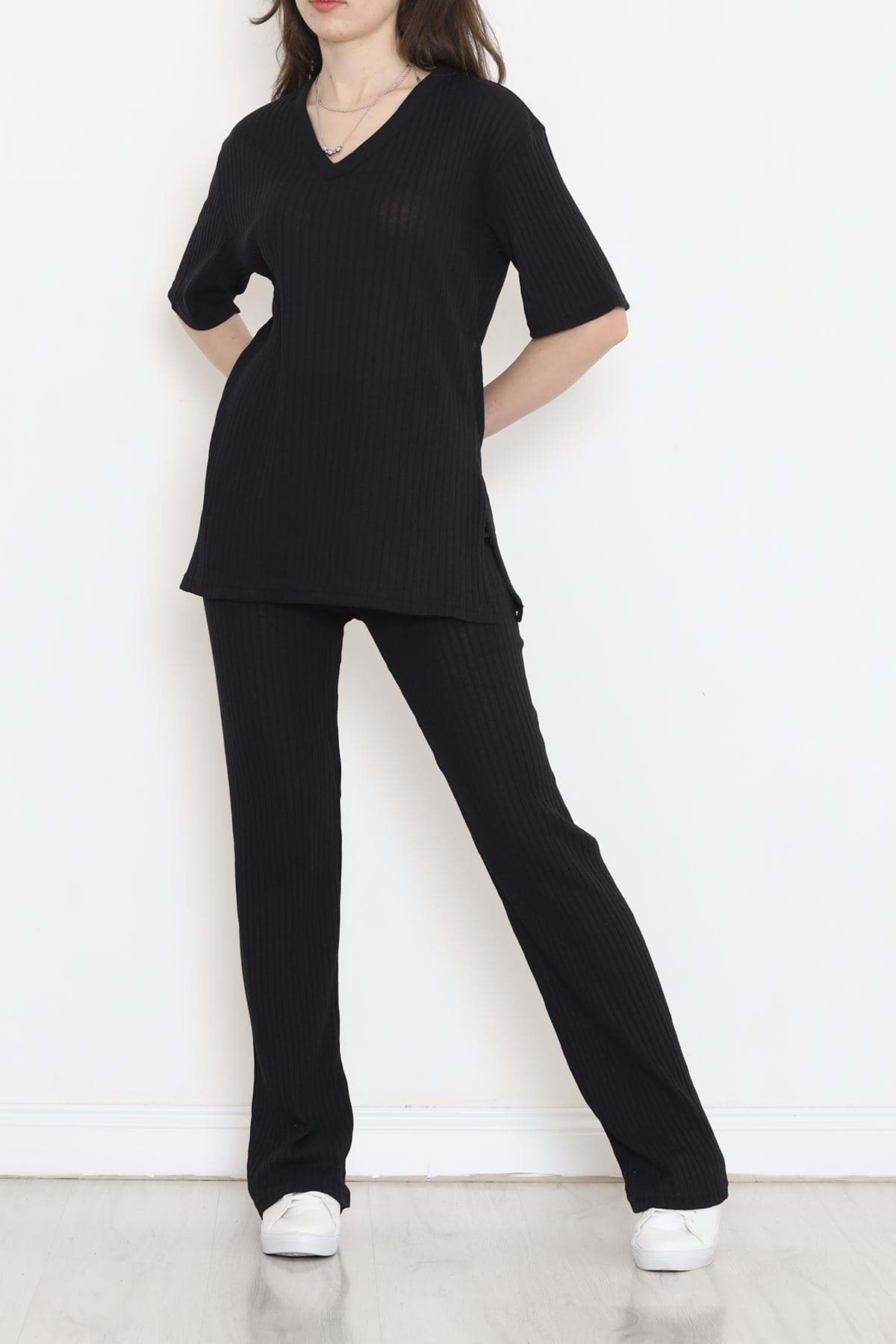 V Yaka Fitilli Takım Siyah - 11230.1567.