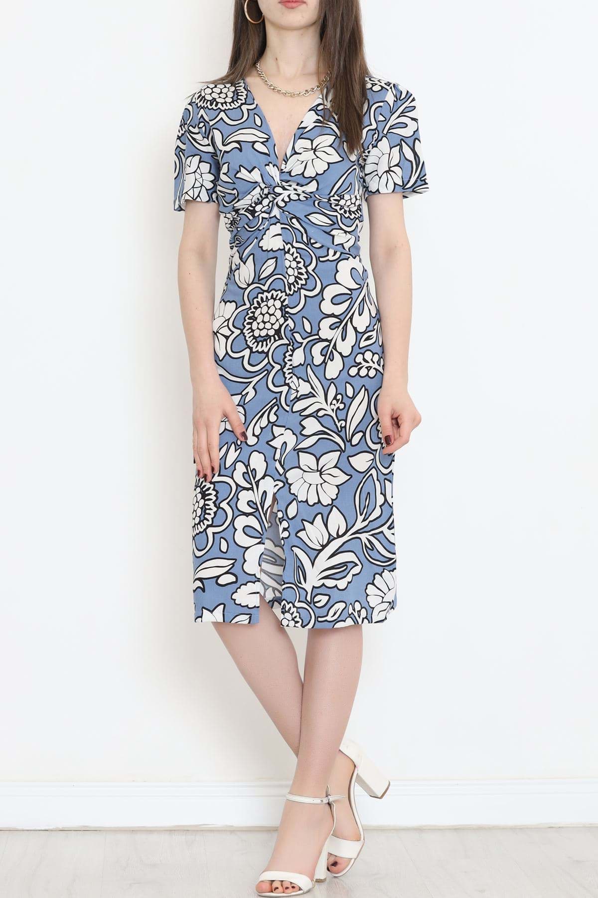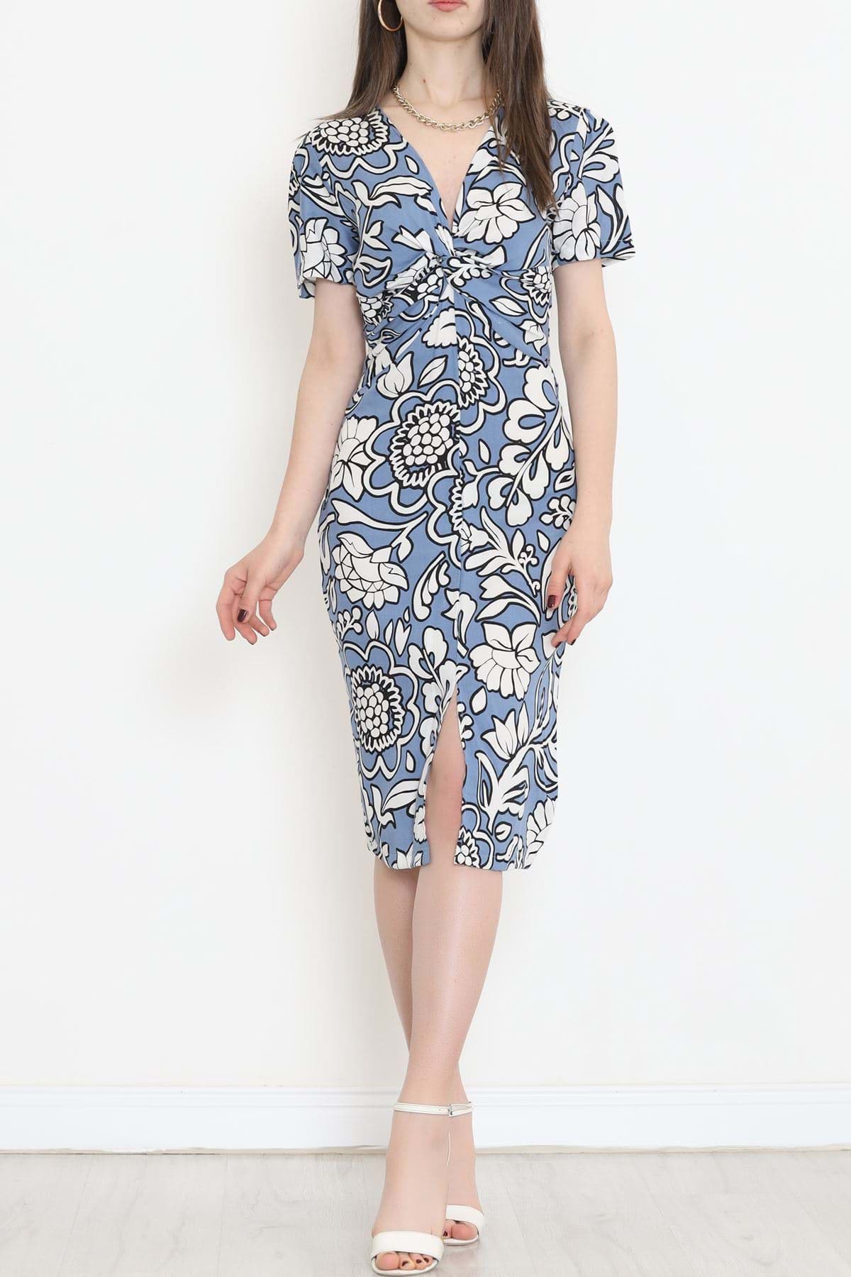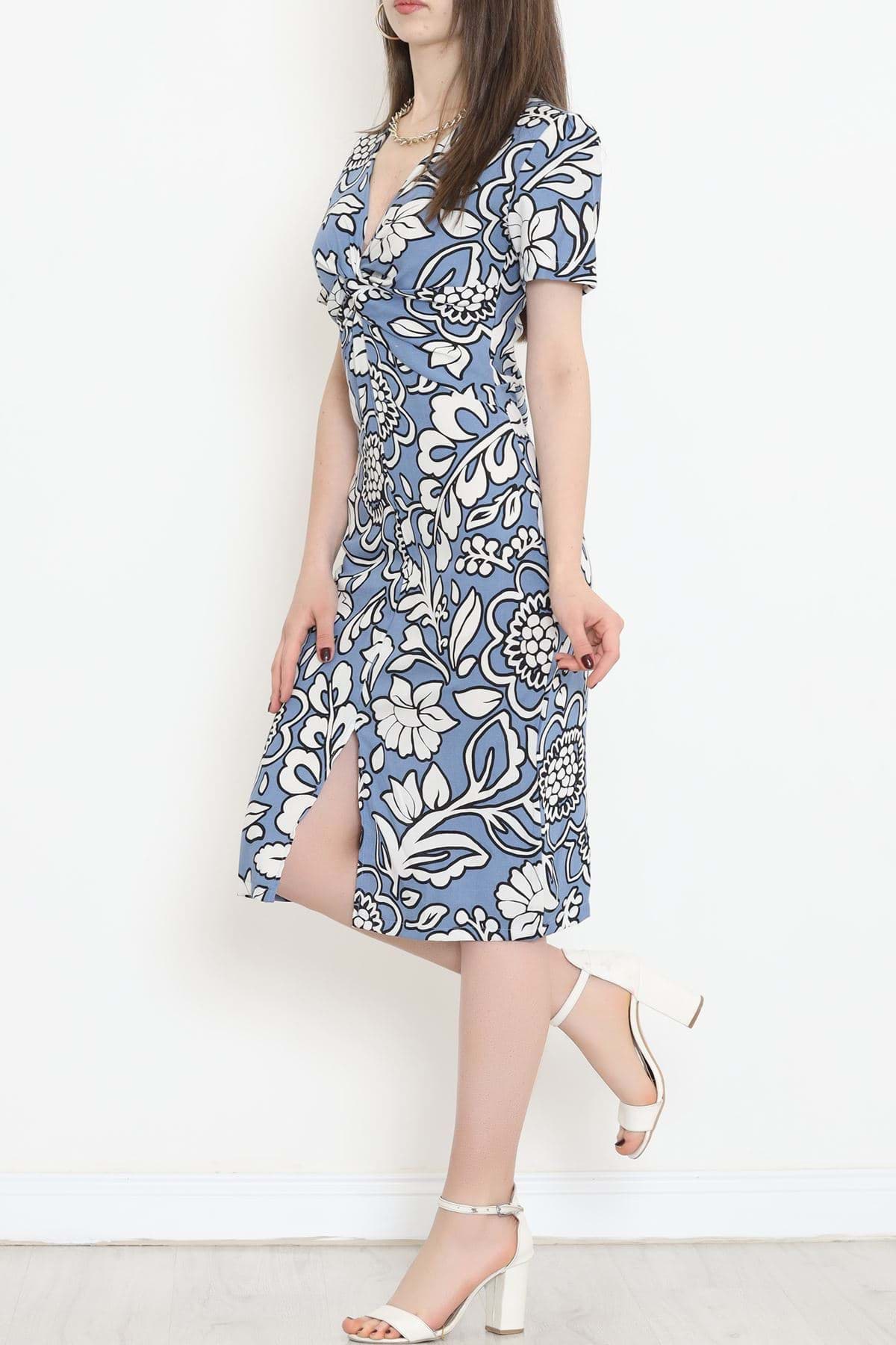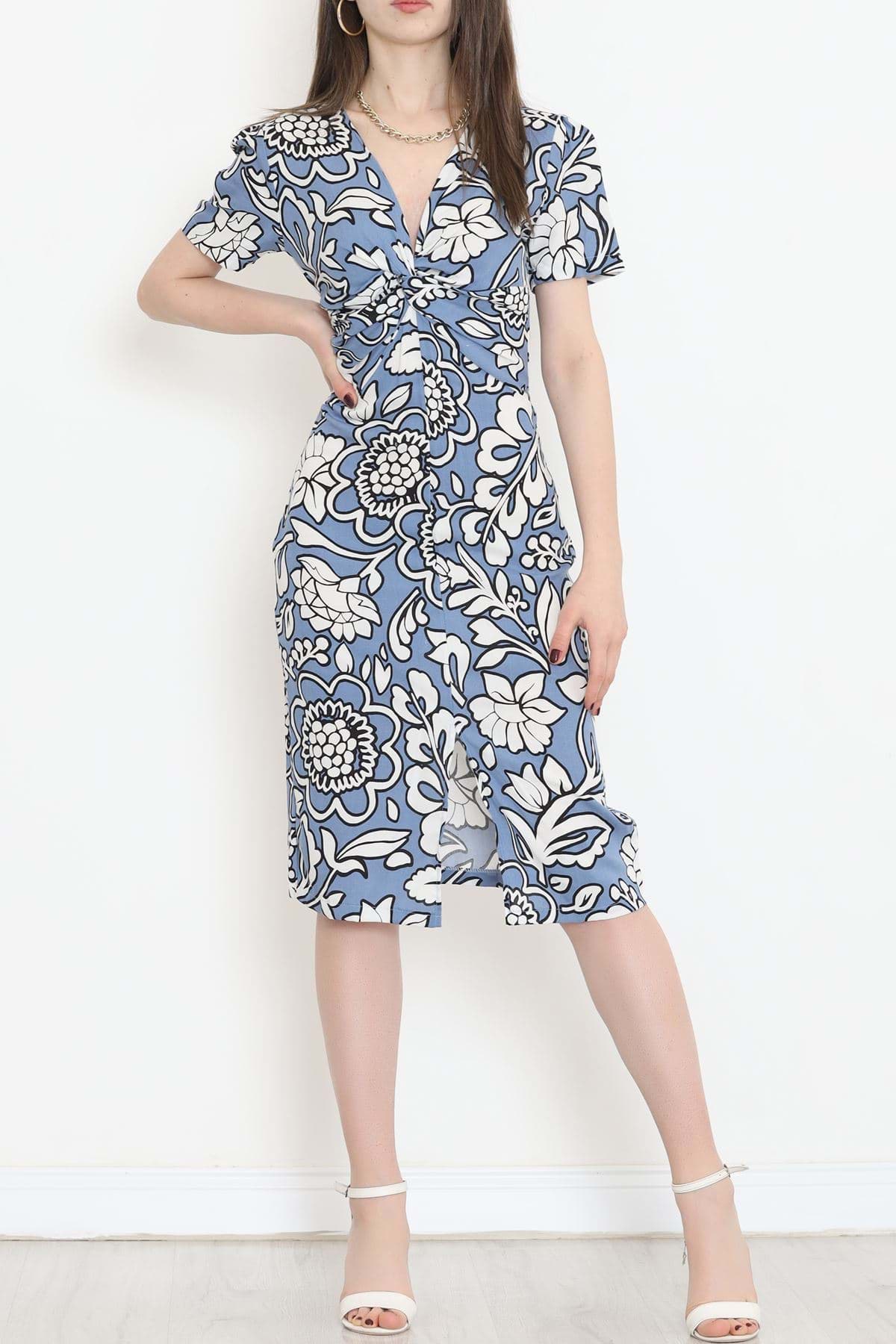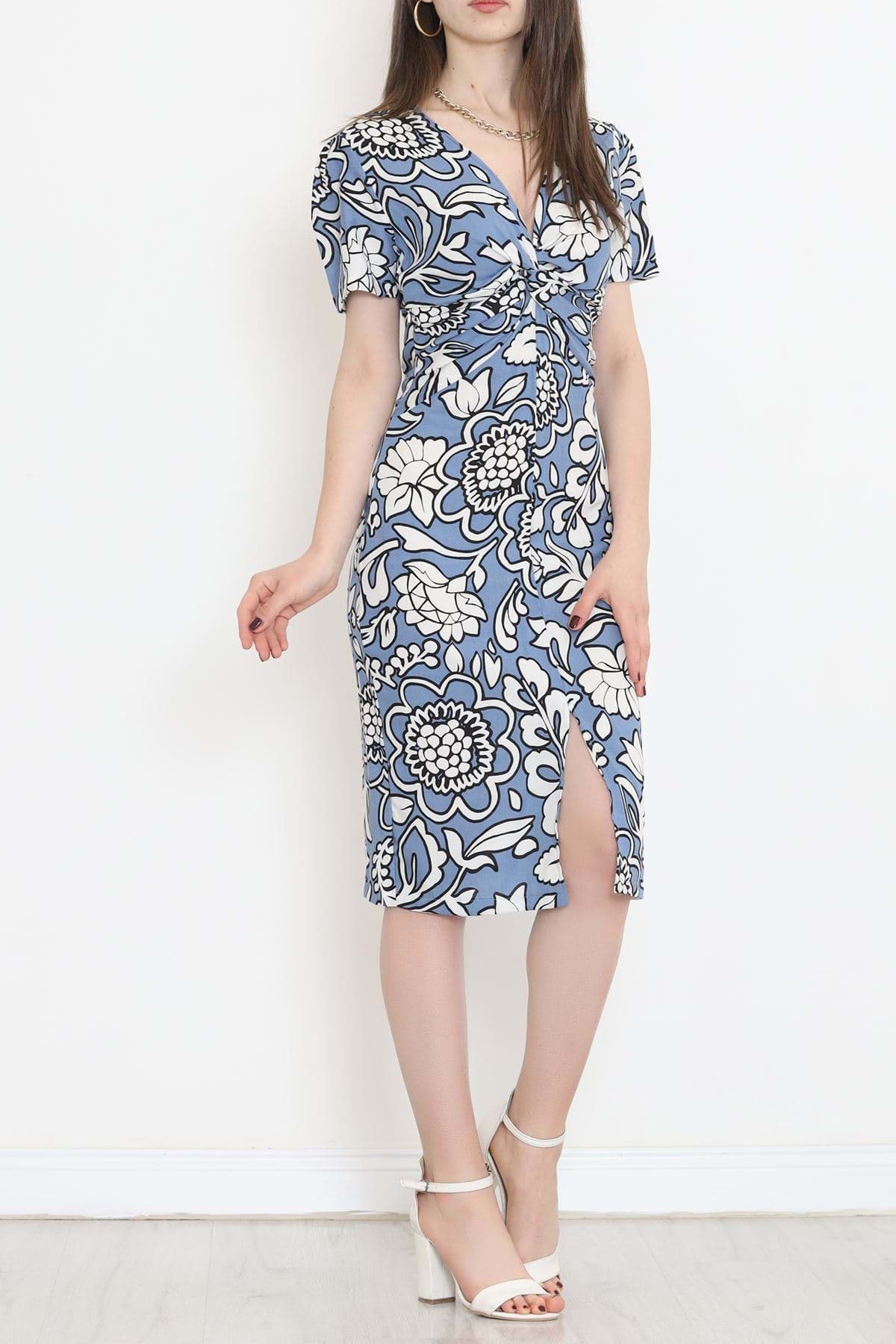 V Yaka Yırtmaçlı Elbise Mavi - 152422.701.