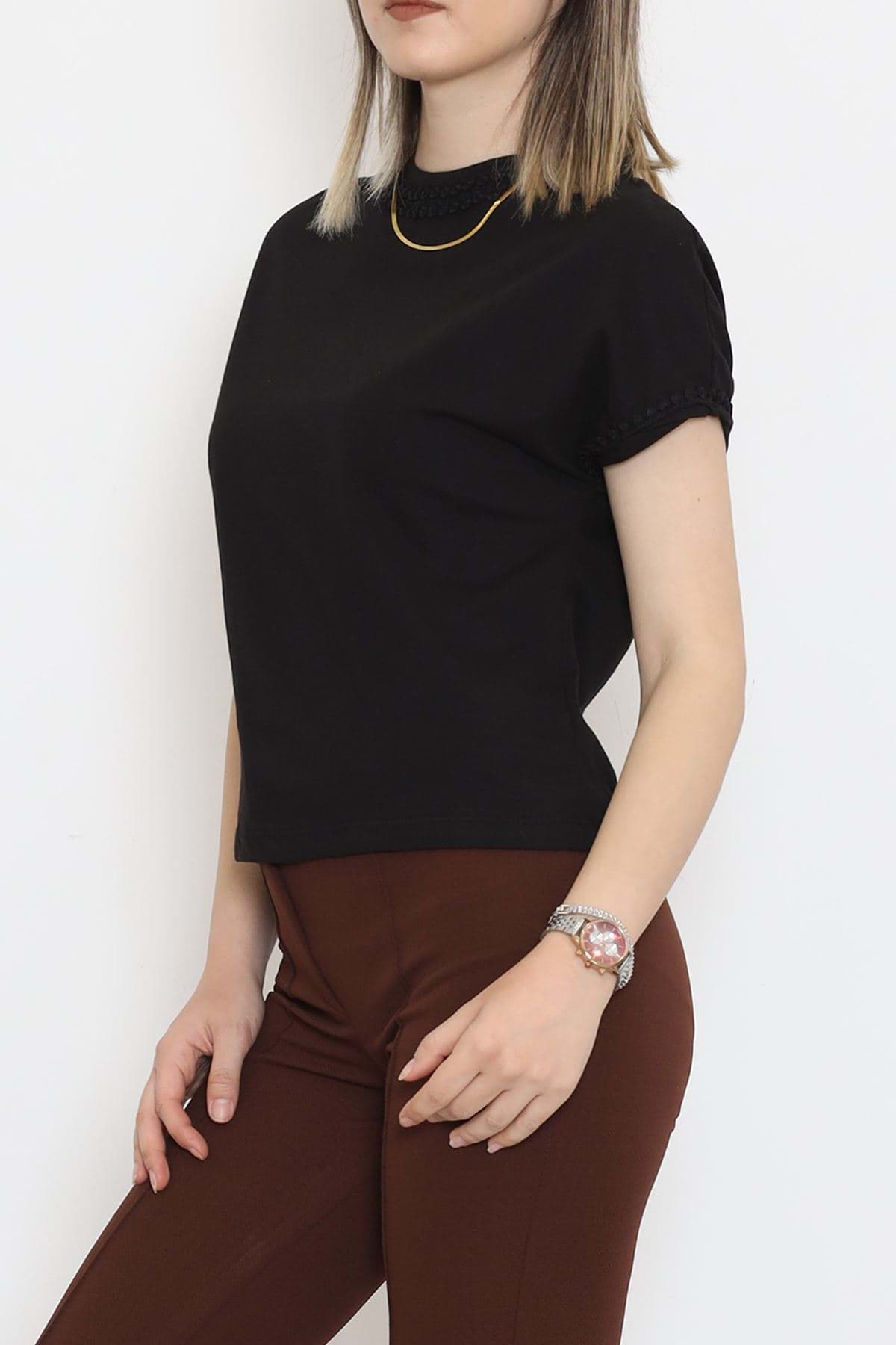 • Yaka Güpürlü Süprem Tişört Siyah - 16489.1567. resmi