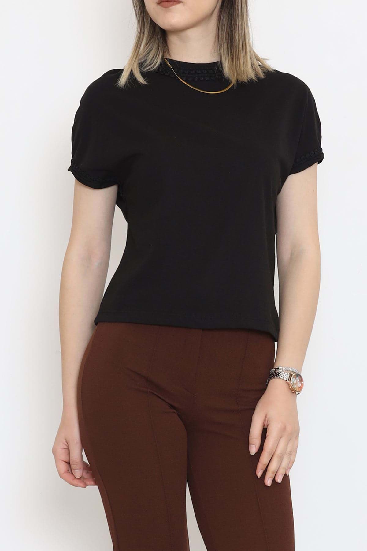 Yaka Güpürlü Süprem Tişört Siyah - 16489.1567.