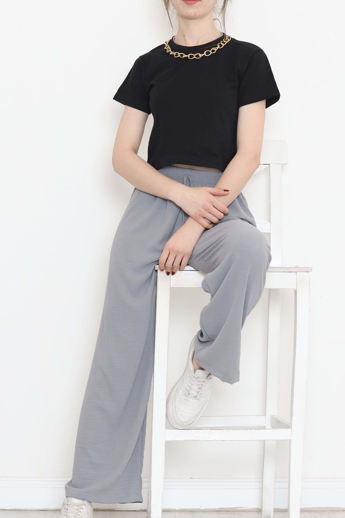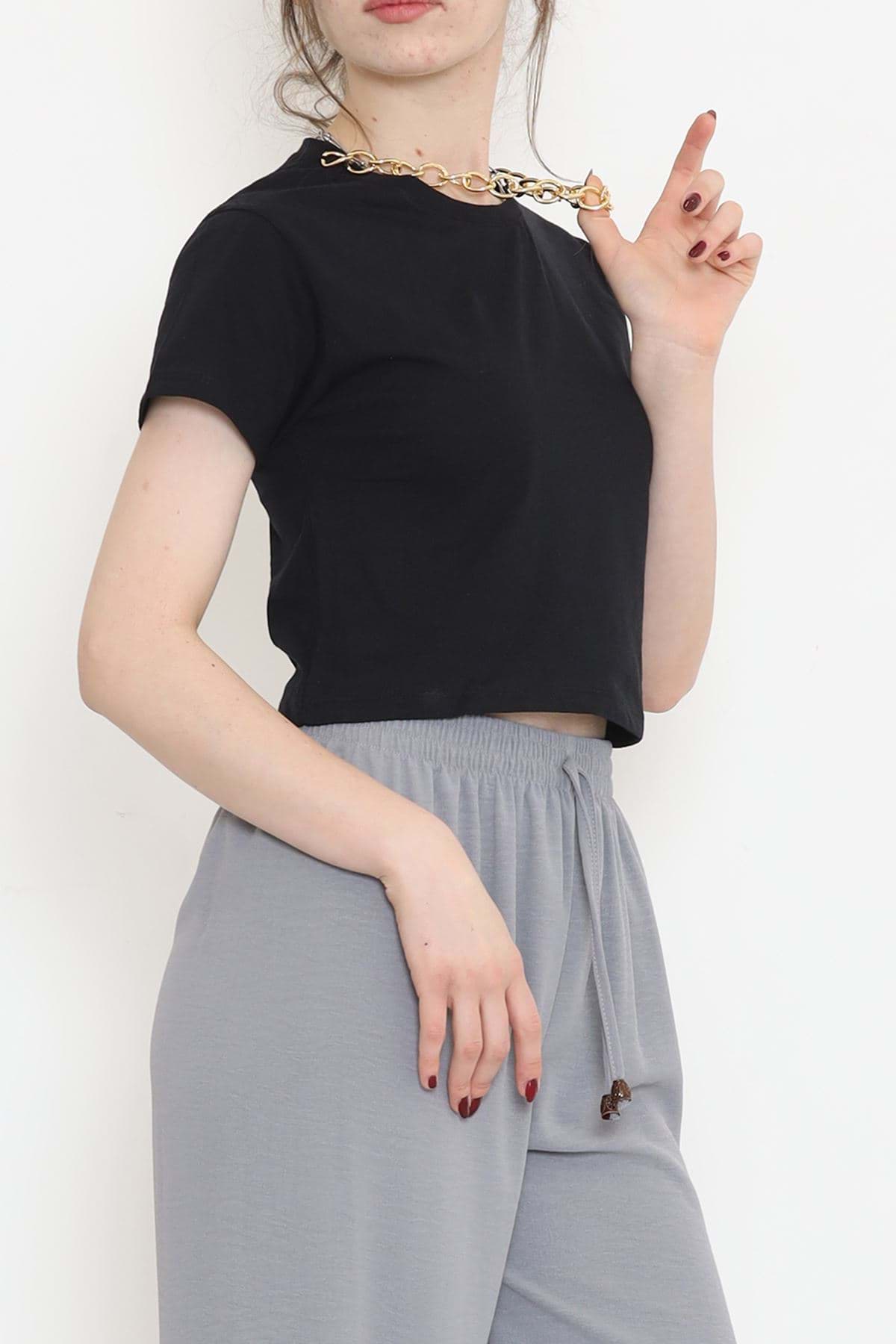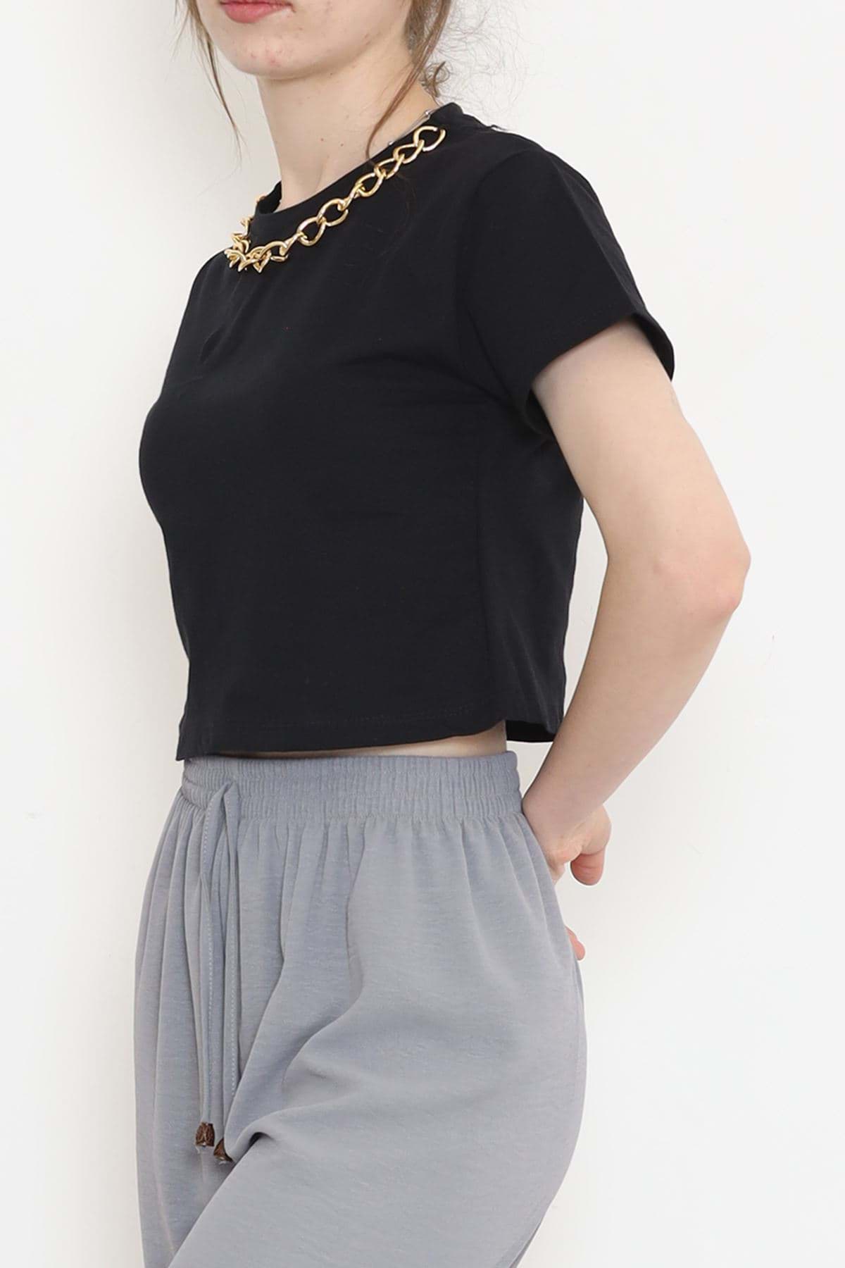 Zincirli Crop Tişört Siyah - 673.1247. resmi